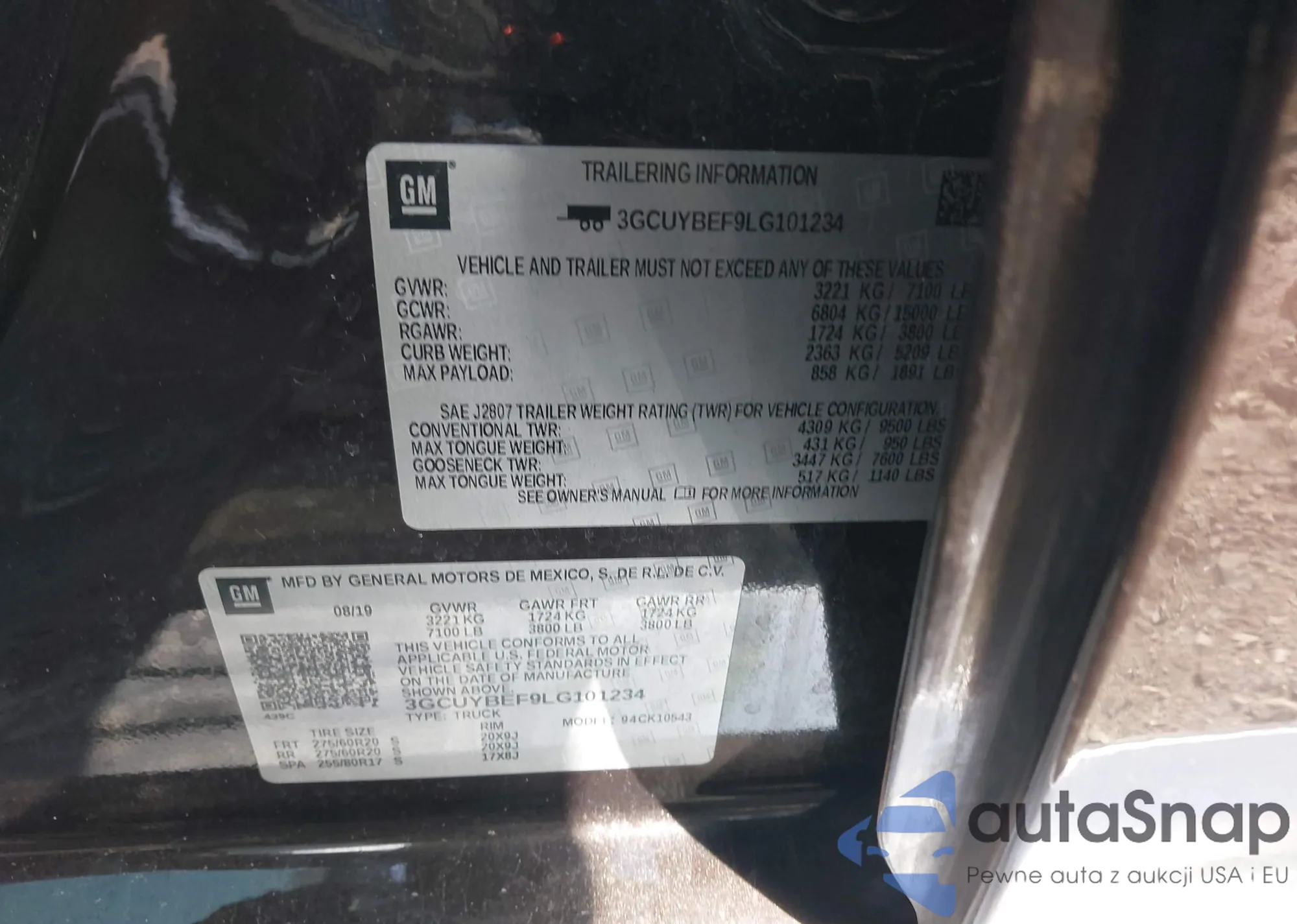 • VIN 3GCUYBEF9LG101234