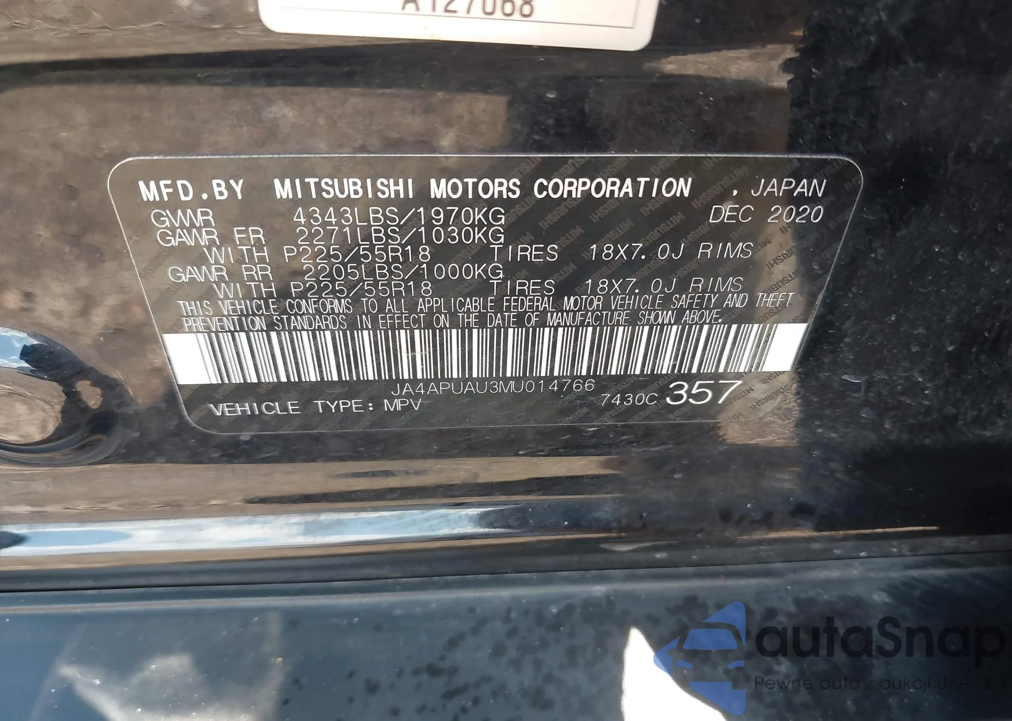 • VIN JA4APUAU3MU014766