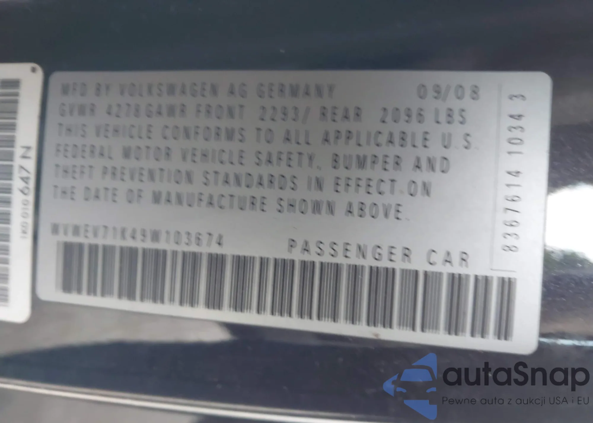 • VIN WVWEV71K49W103674