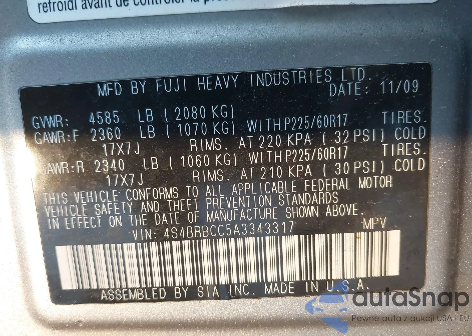 • VIN 3FAHP0JA1BR277979