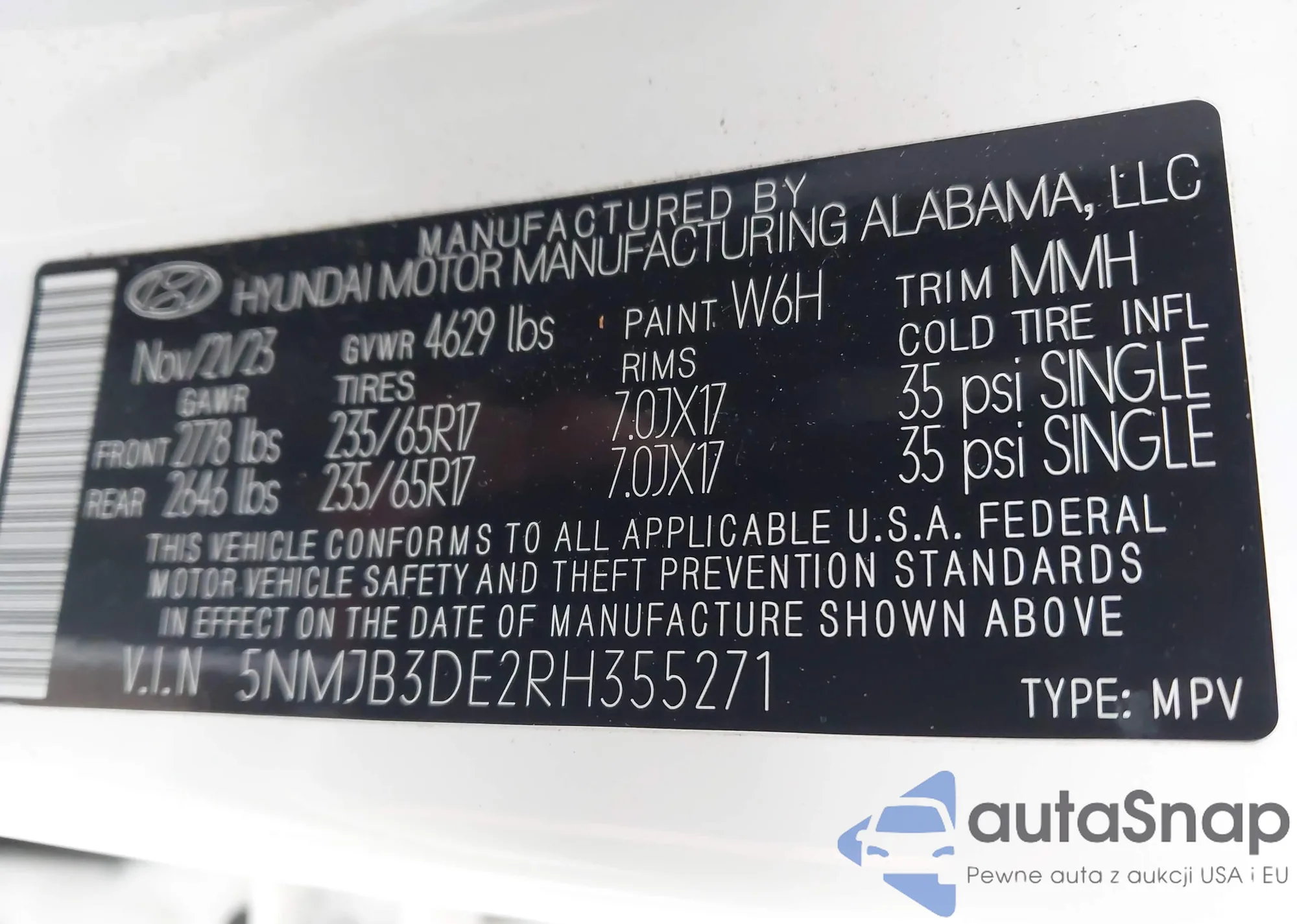 • VIN 5NMJB3DE2RH355271
