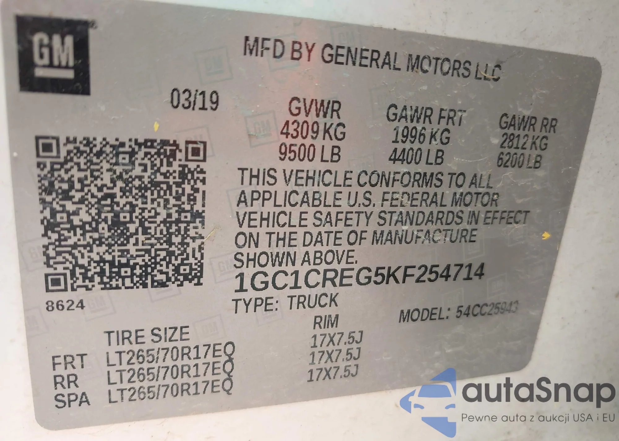 LOT: 43803438 VIN: 1GC1CREG5KF254714