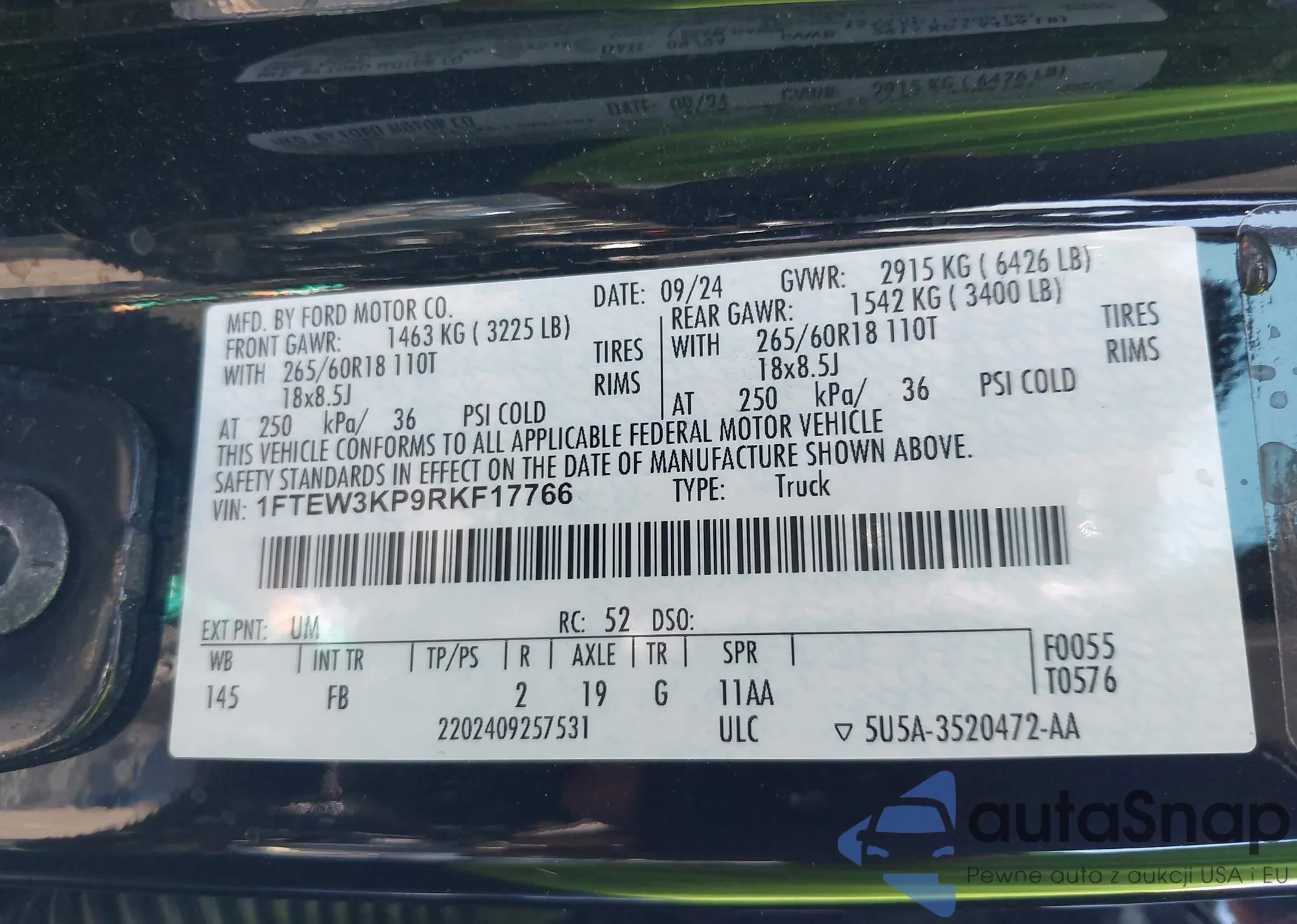 LOT: 43330018 VIN: 1FTEW3KP9RKF17766
