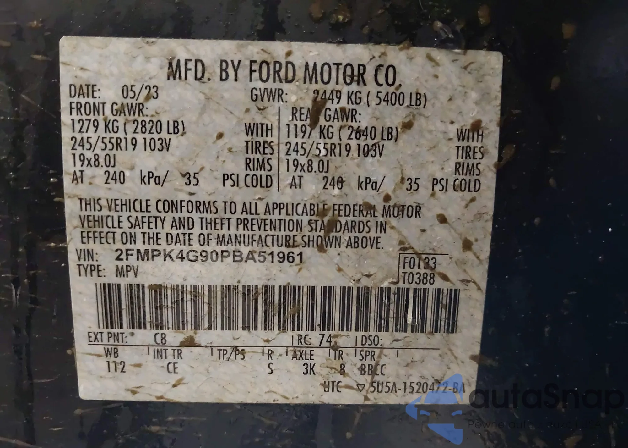LOT: 43526343 VIN: 2FMPK4G90PBA51961
