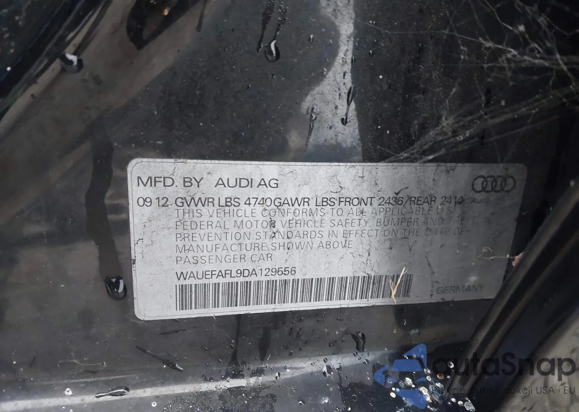 • VIN WAUEFAFL9DA129556