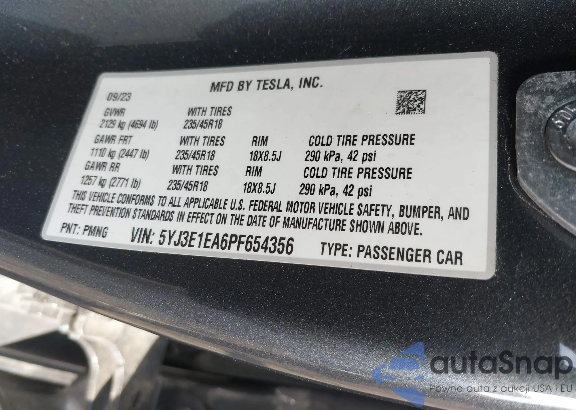 • VIN 5YJ3E1EA6PF654356