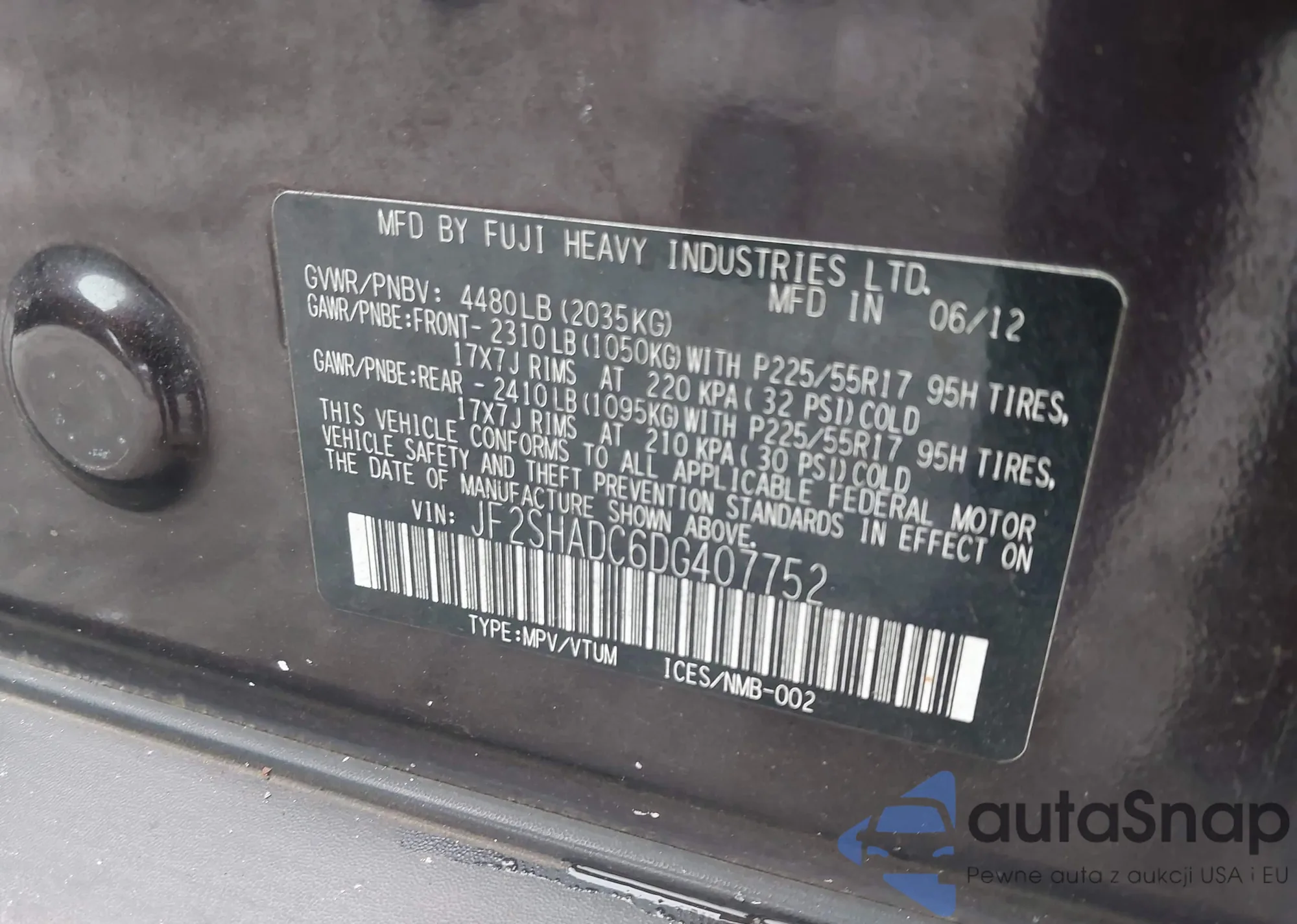 LOT: 43885522 VIN: JF2SHADC6DG407752