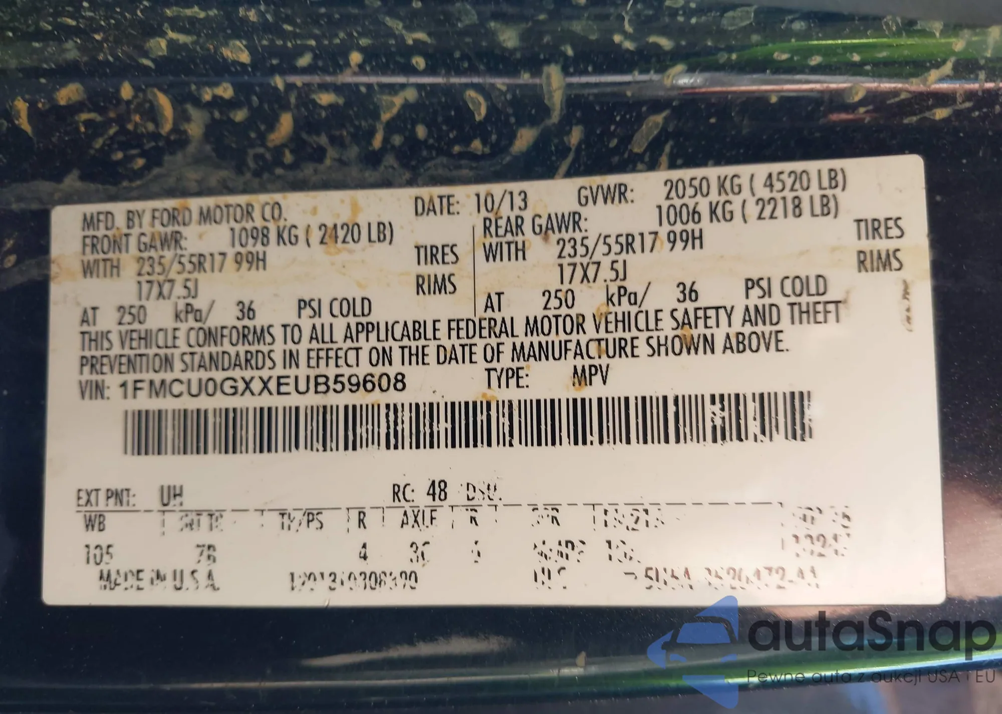 • VIN 1FMCU0GXXEUB59608