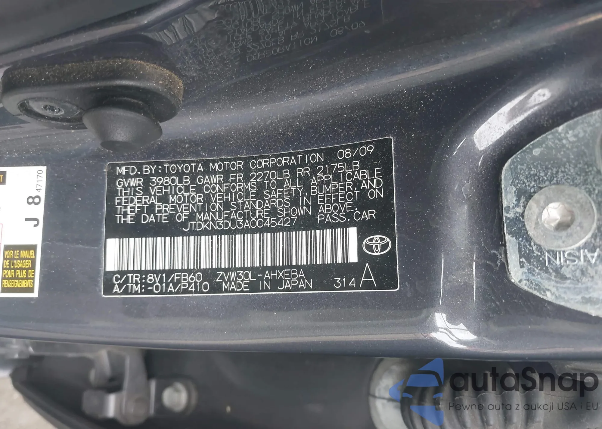 • VIN 5TDACAB53SS031415