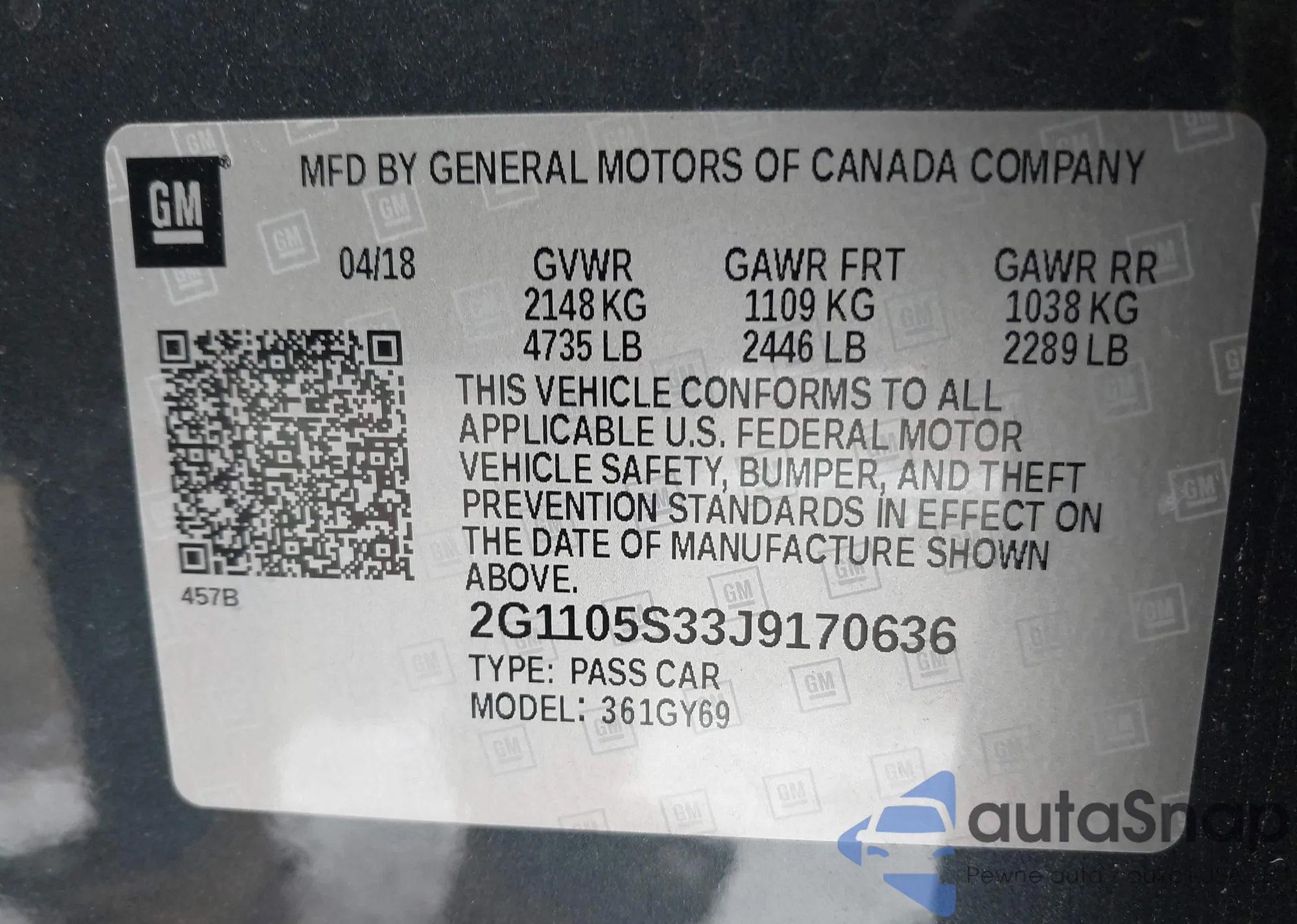 LOT: 44034040 VIN: VCF1ZBU23PG005437
