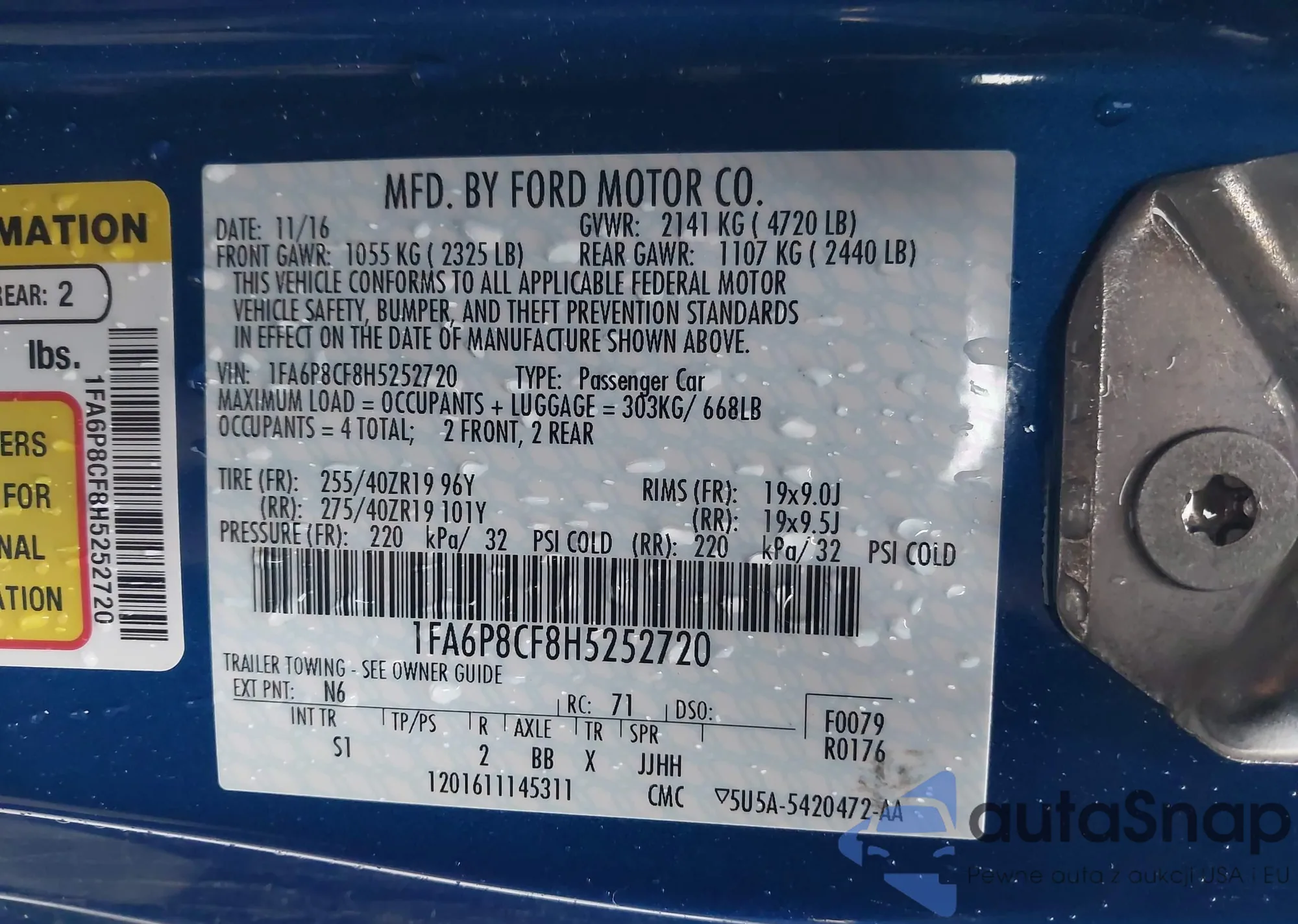 • VIN 1FA6P8CF8H5252720