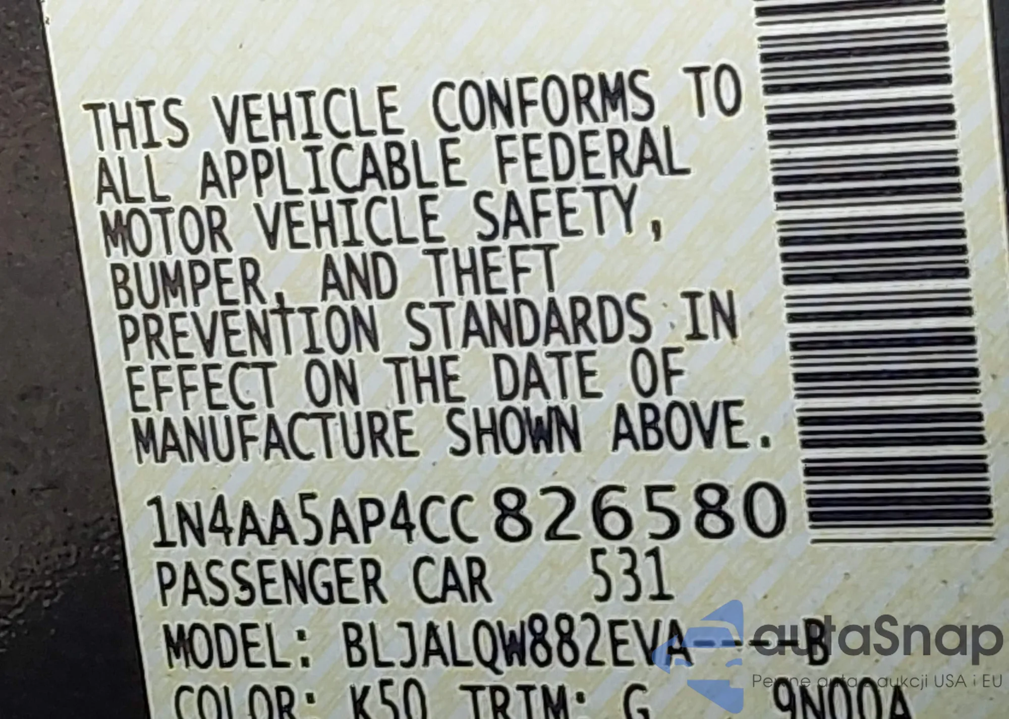 • VIN 1N4AA5AP4CC826580