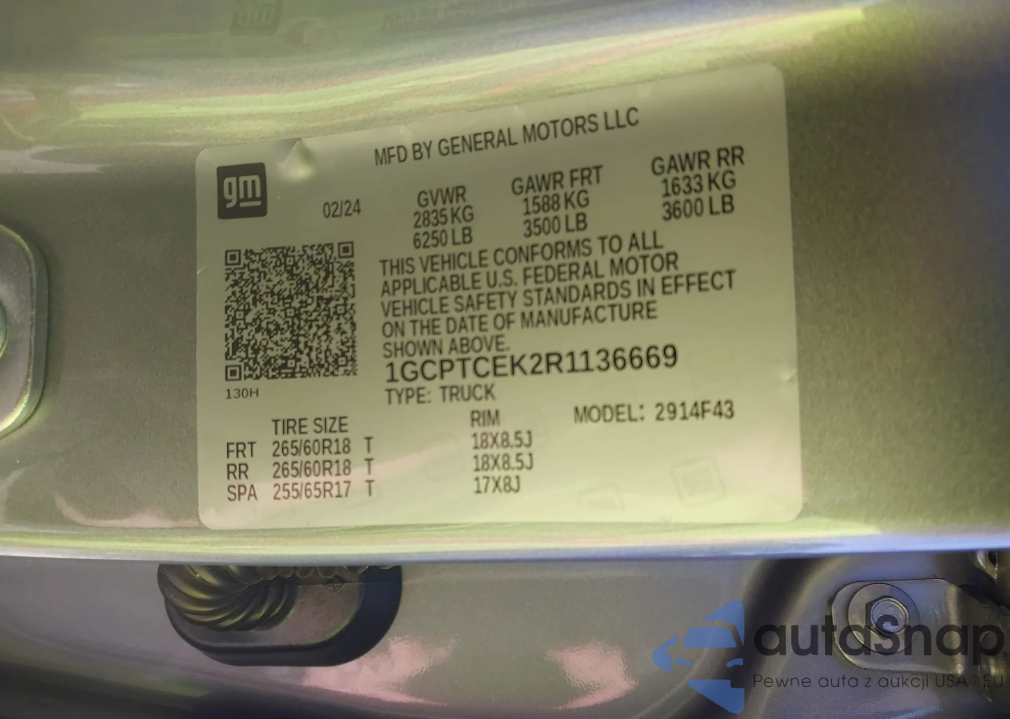 LOT: 43136828 VIN: 1GCPACEDXNZ514272