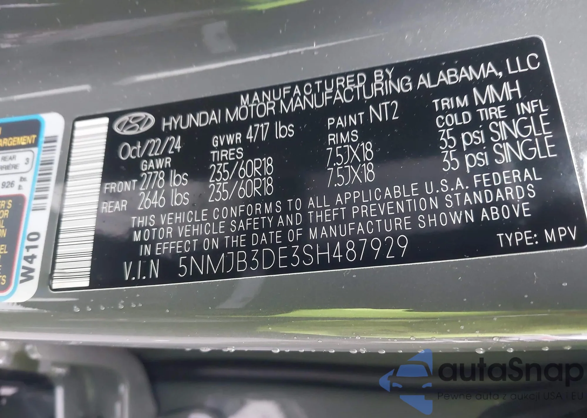 • VIN 5NMJB3DE3SH487929