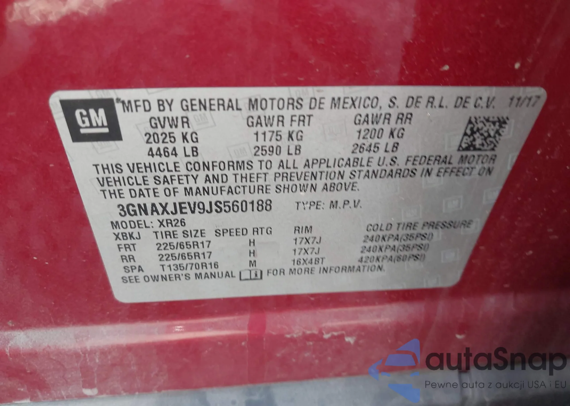 • VIN 3GNAXJEV9JS560188