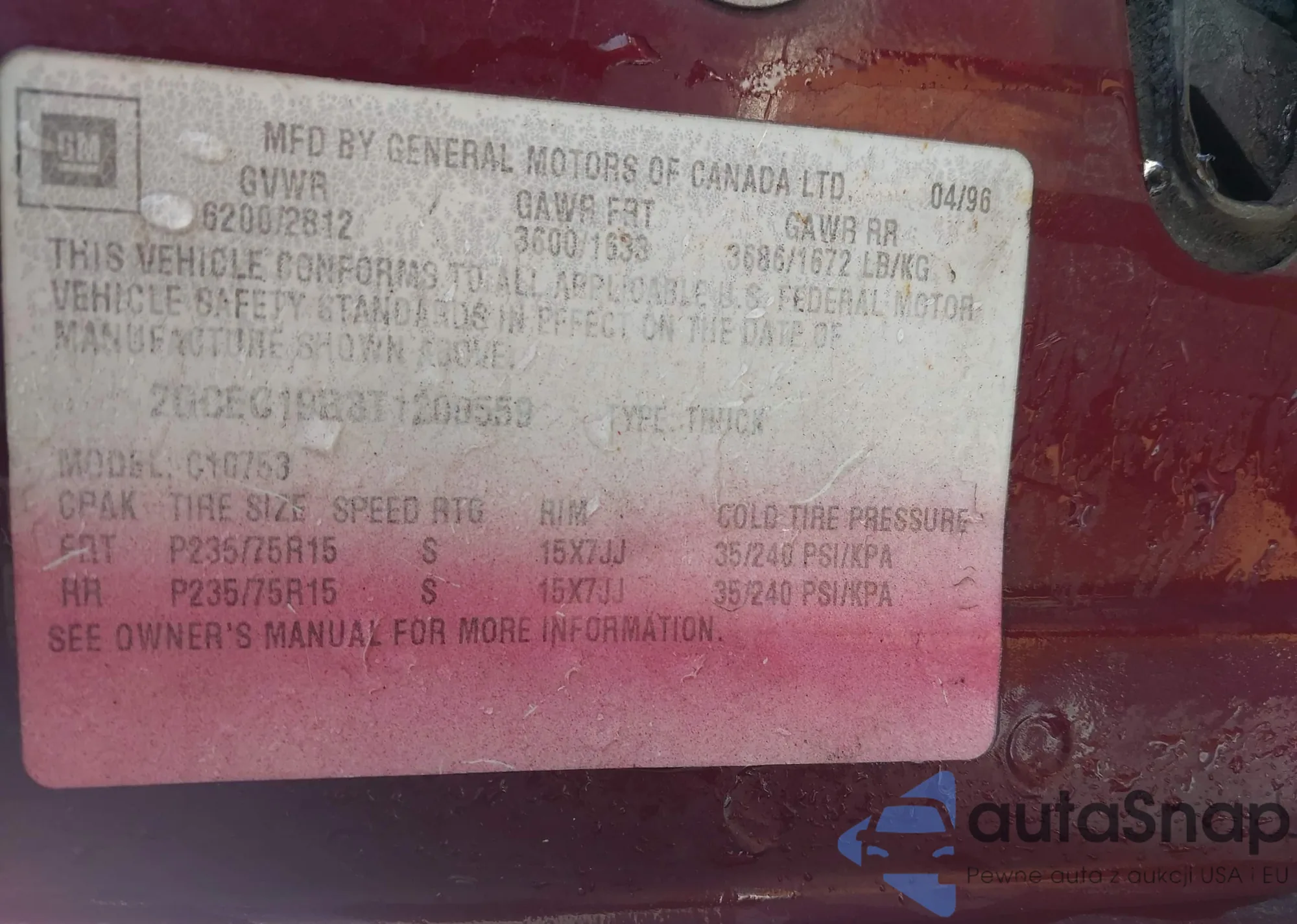 • VIN 2GCEC19R3T1200559