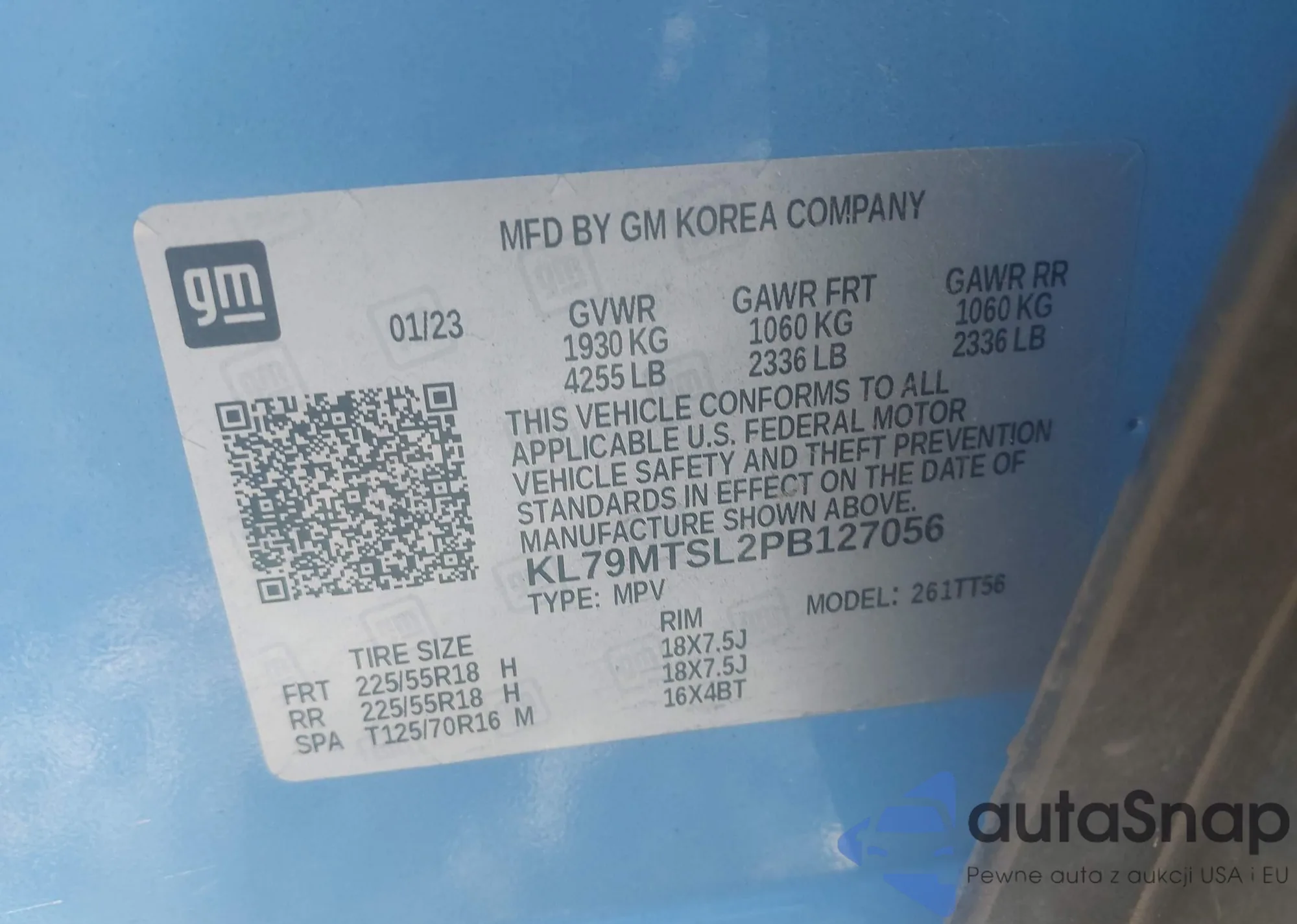 • VIN KL79MTSL2PB127056
