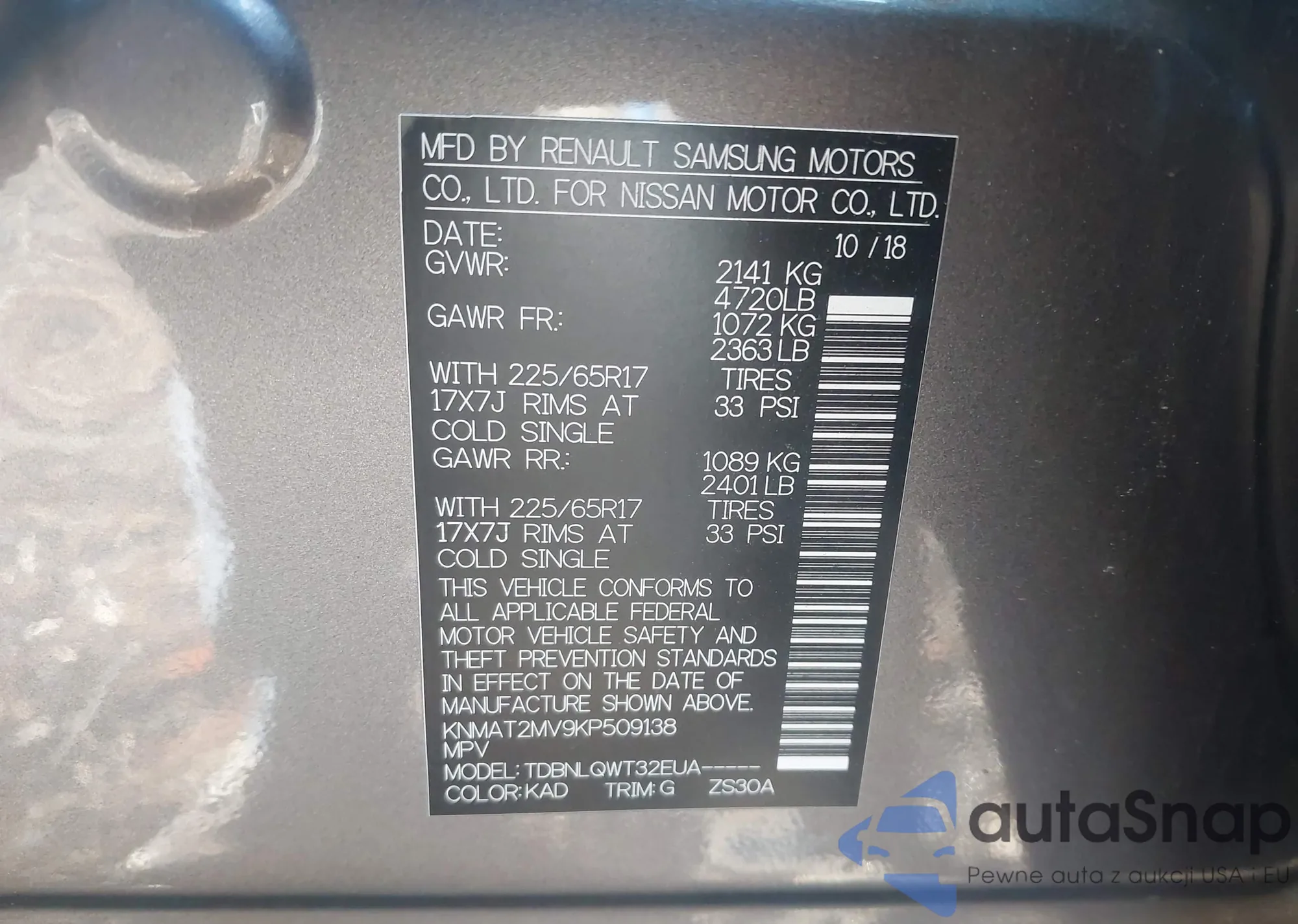 • VIN KNMAT2MV9KP509138