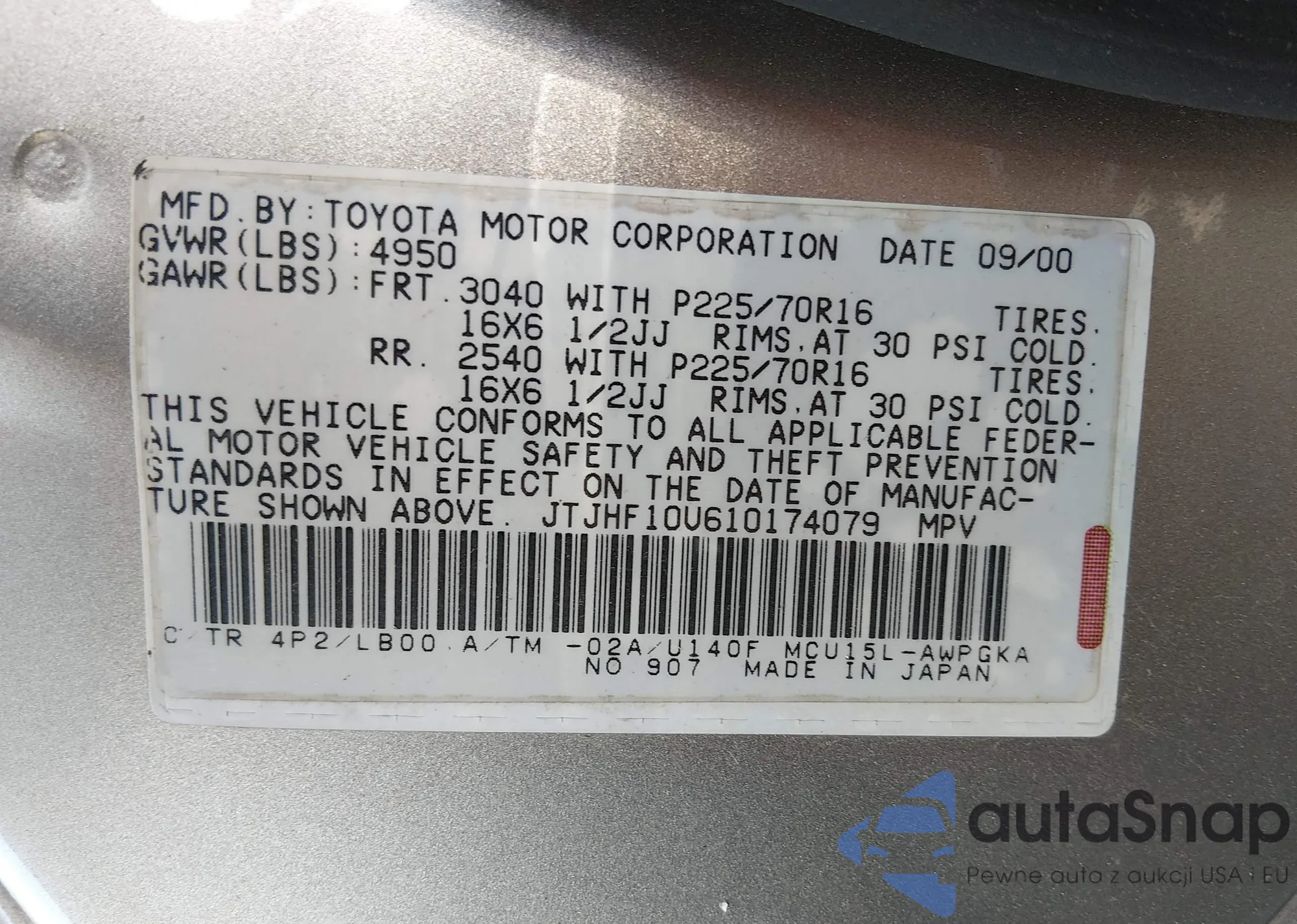 LOT: 43896770 VIN: JTJHF10U610174079