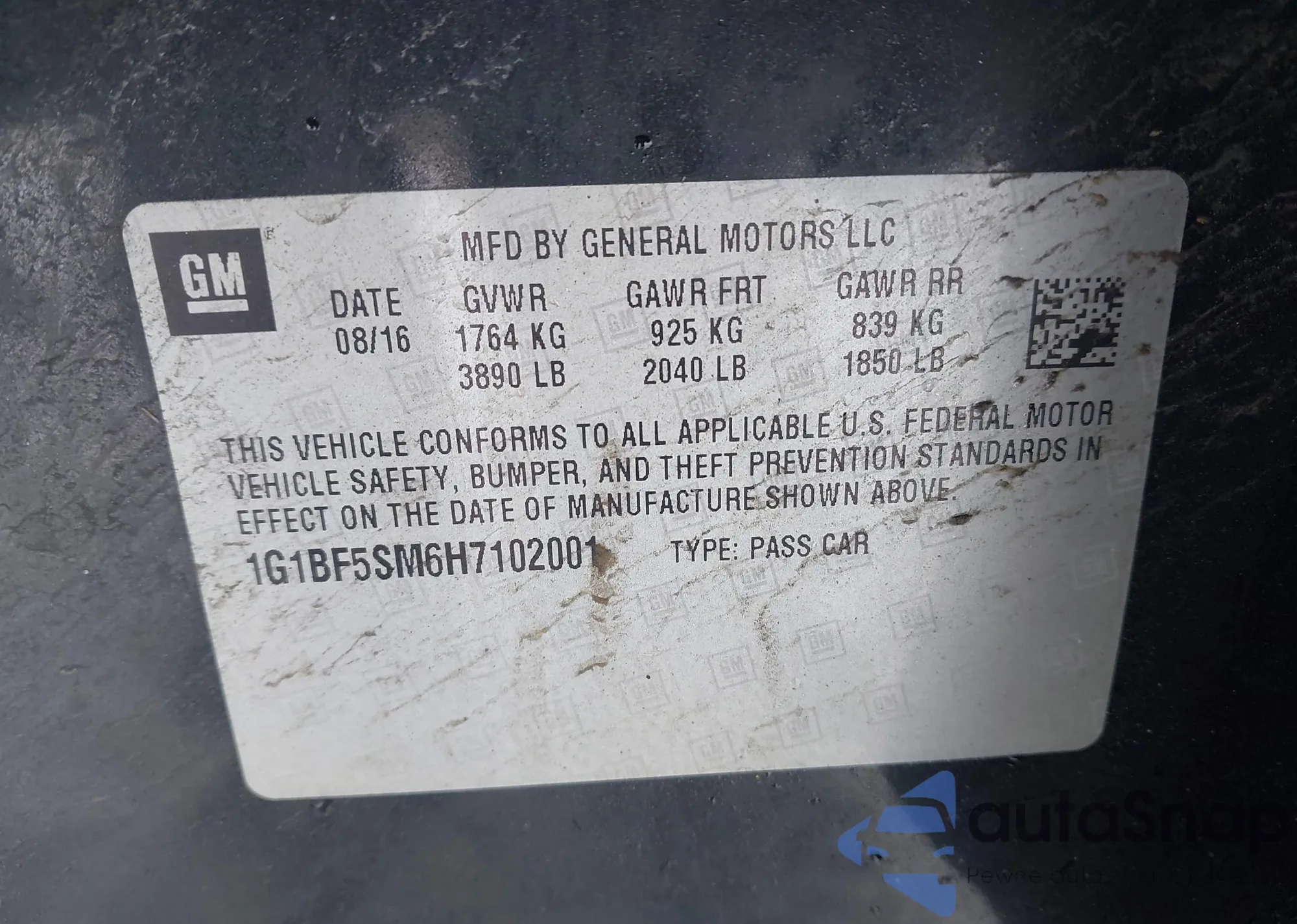 • VIN 1G1BF5SM6H7102001