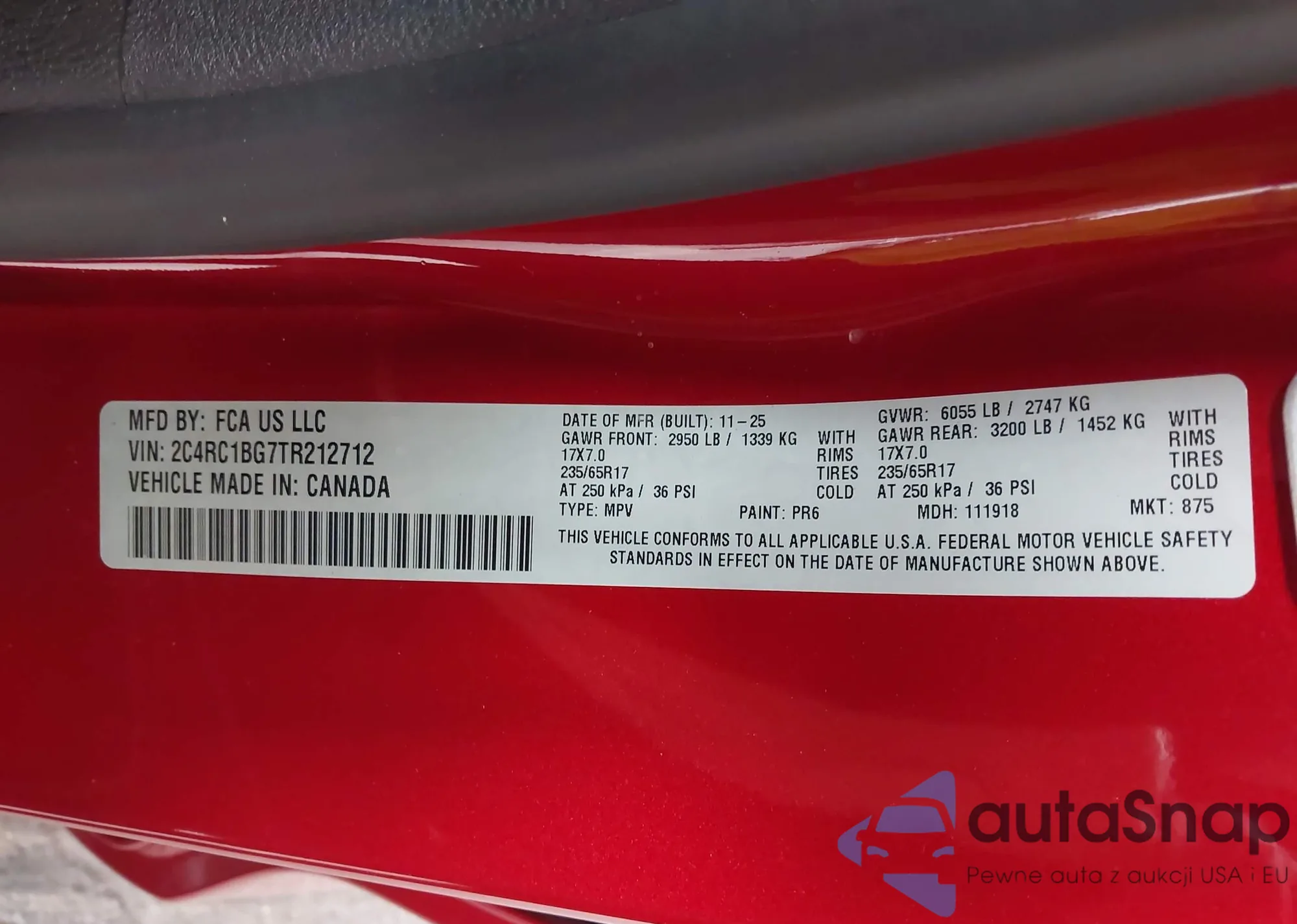 • VIN 2C4RC1BG7TR212712