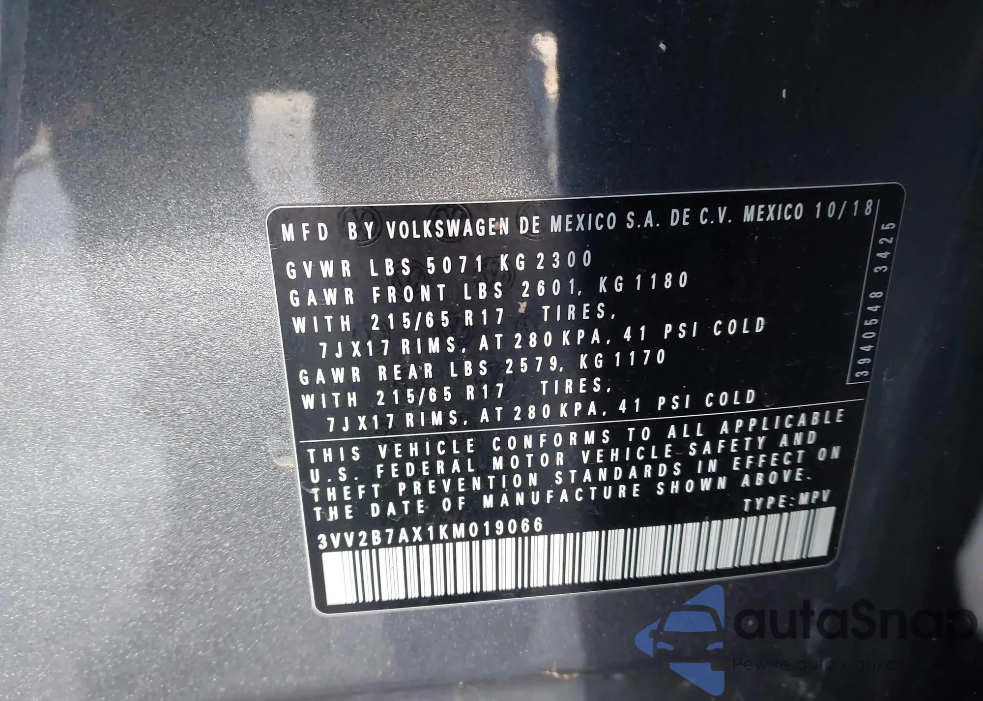 • VIN 3VV2B7AX1KM019066