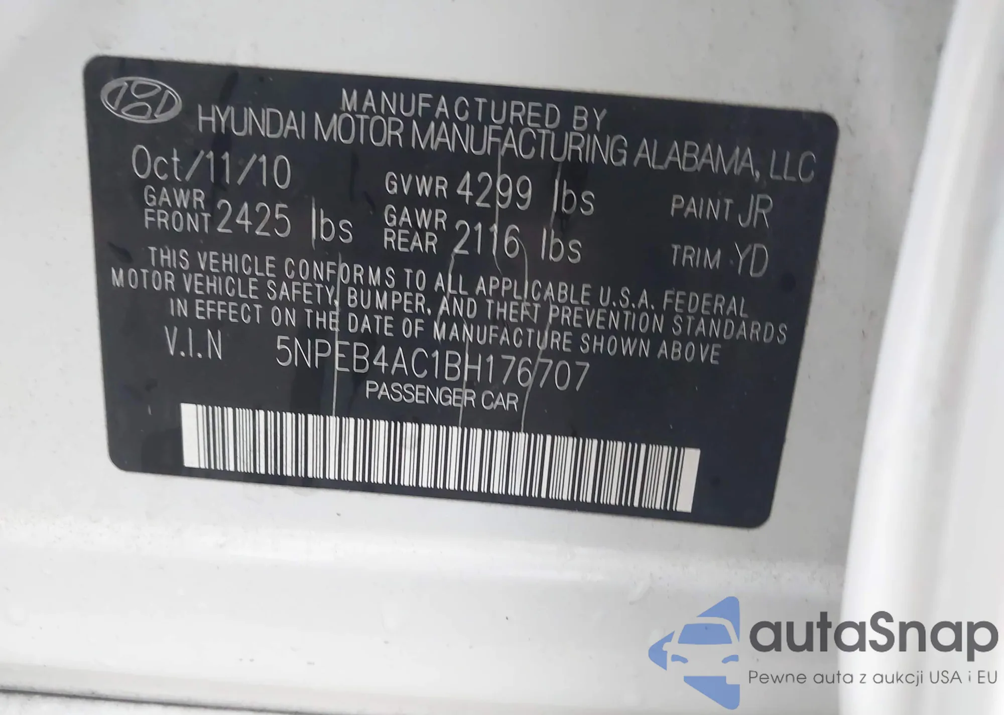 • VIN 5NPEB4AC1BH176707
