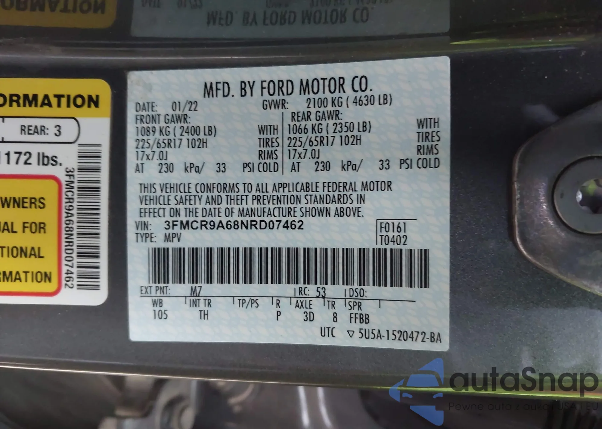 • VIN 3FMCR9A68NRD07462