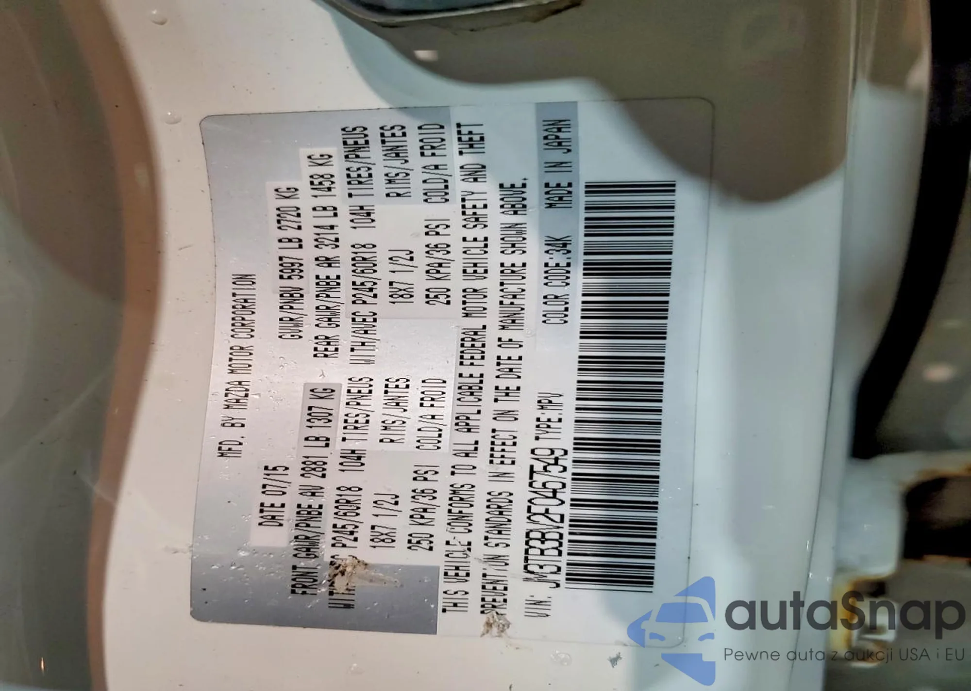 LOT: 99130845 VIN: KNMAT2MV3JP533126