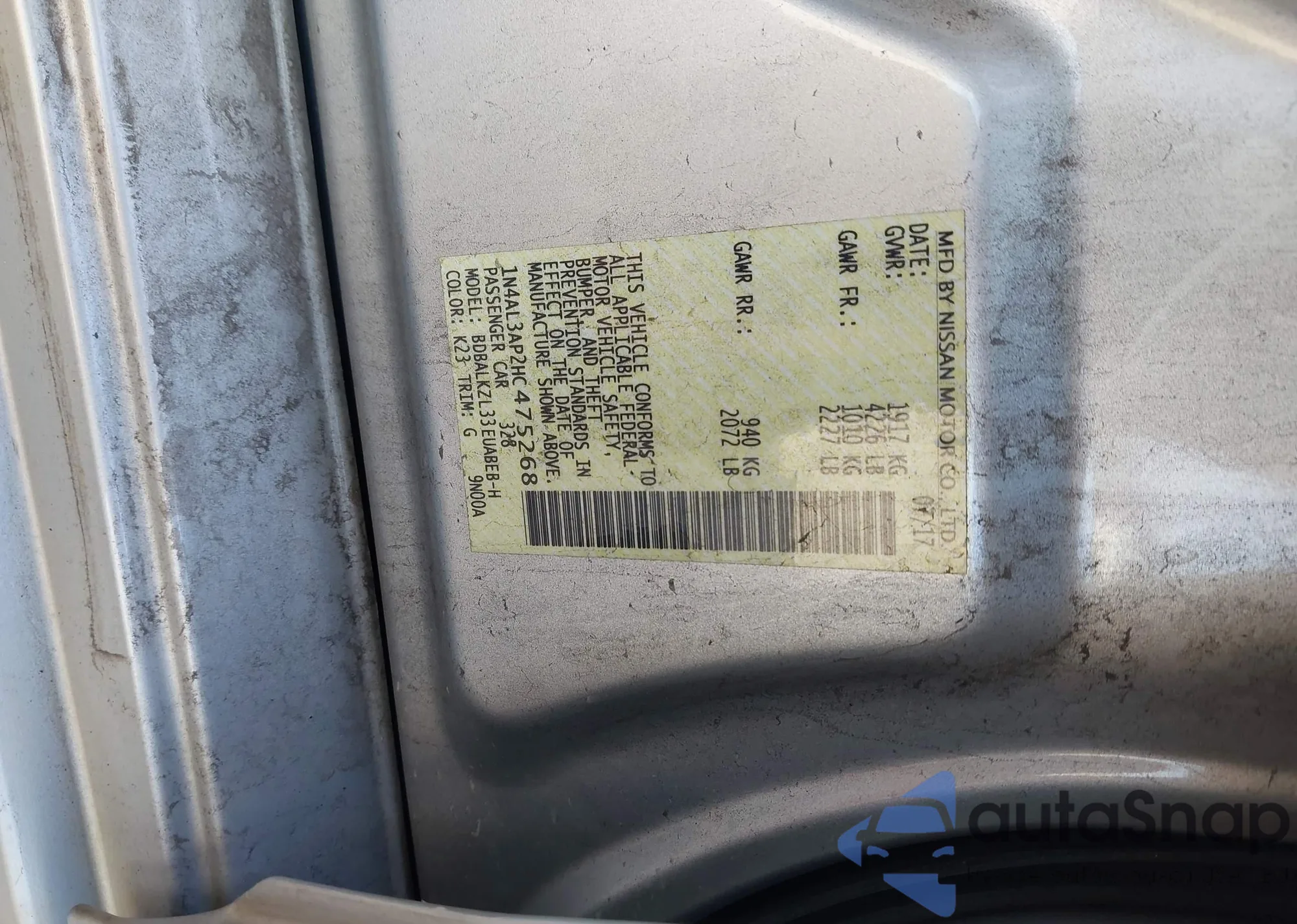 LOT: 43998418 VIN: 3N1AB7AP8HY340231