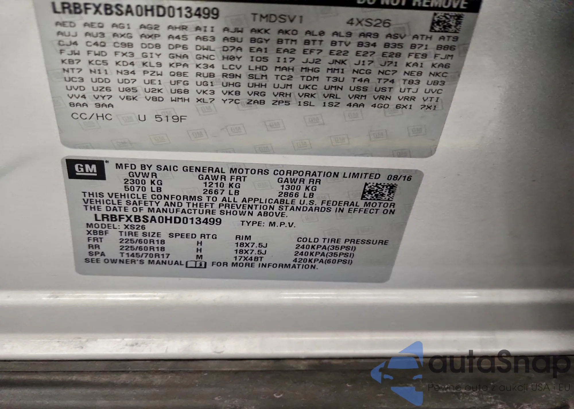 • VIN LRBFXBSA0HD013499
