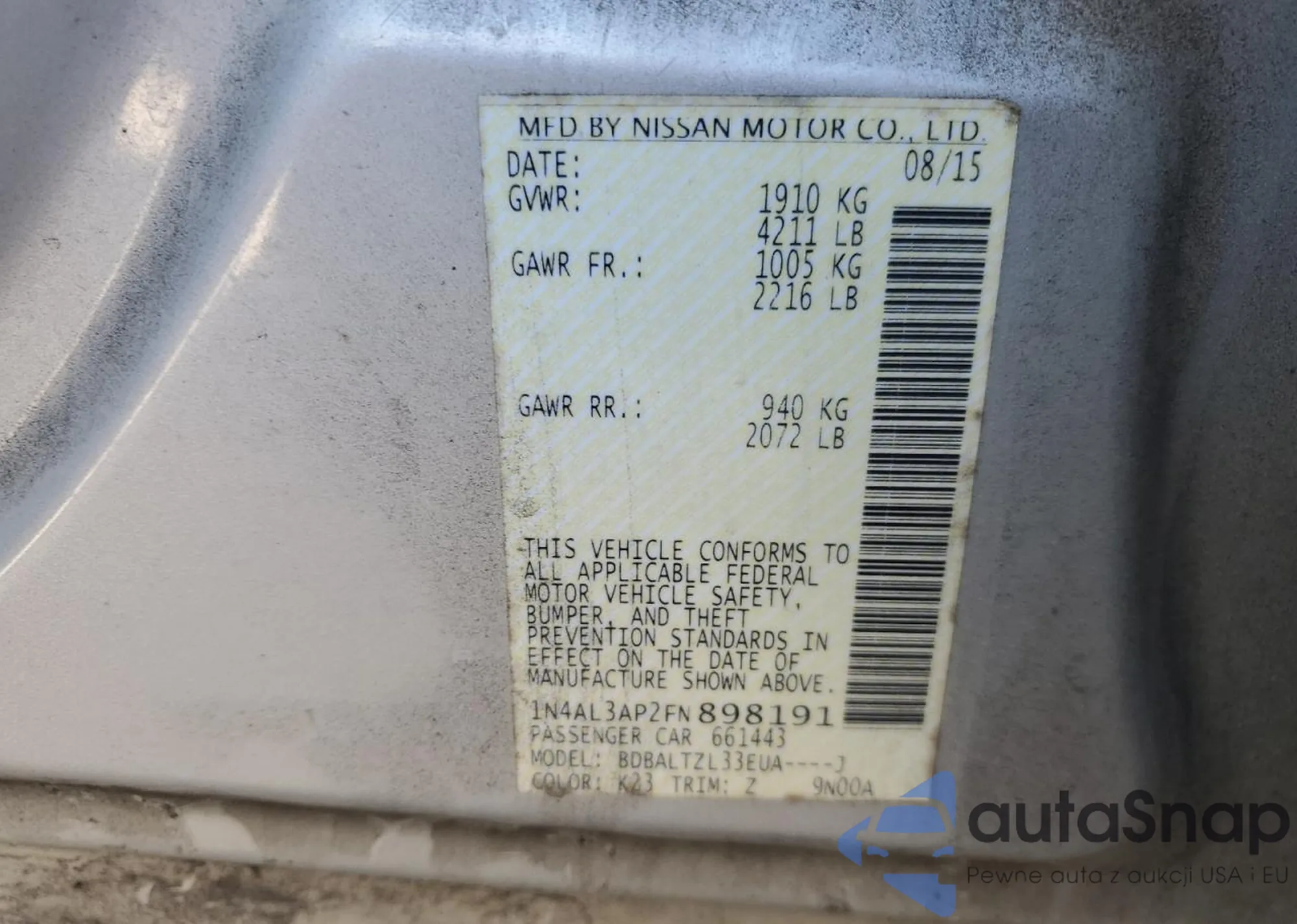 LOT: 92224885 VIN: 1N4AL3AP2FN898191
