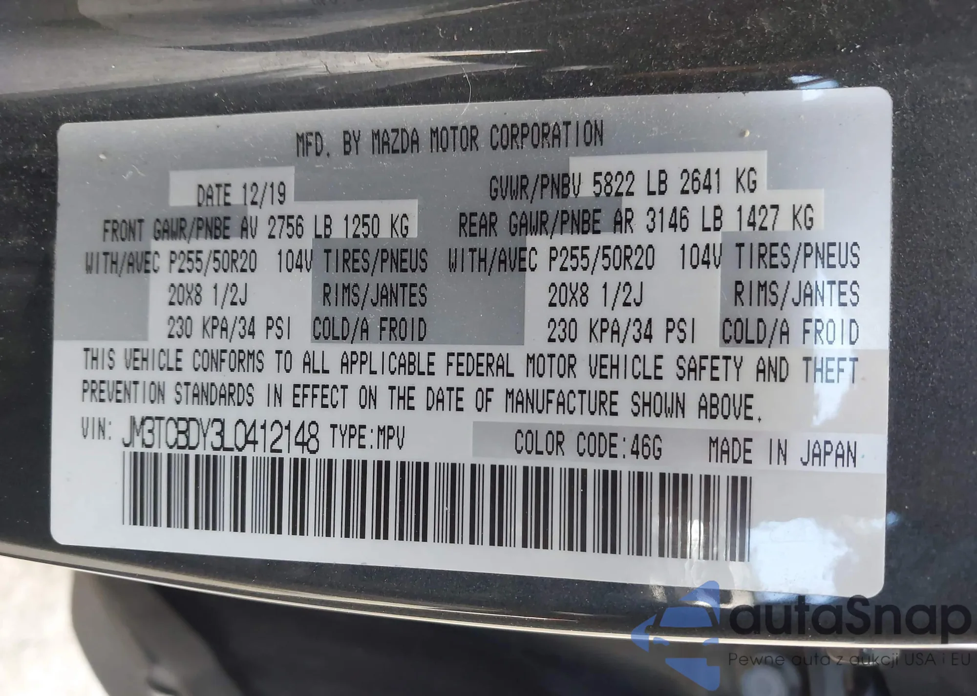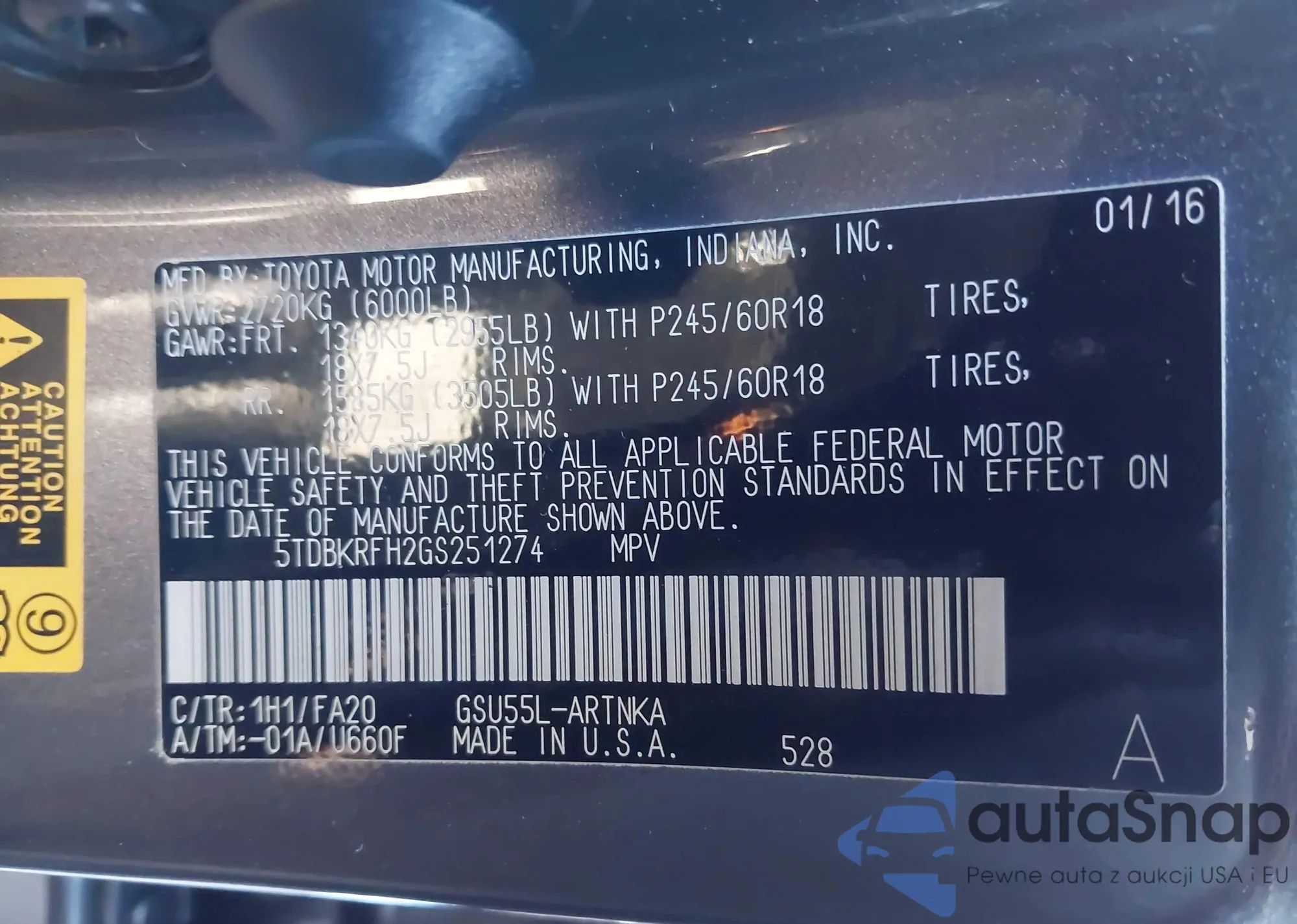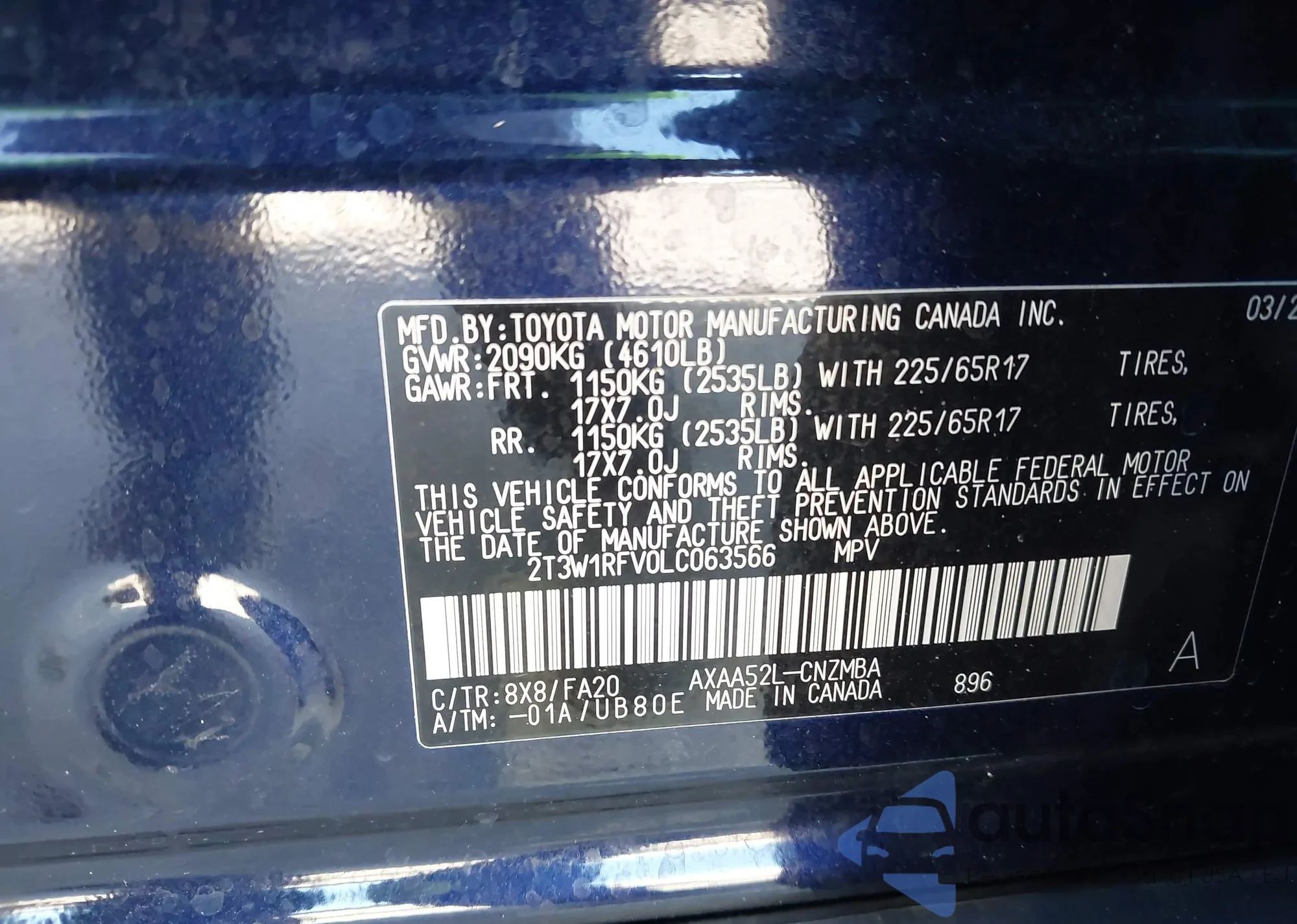 LOT: 43866717 VIN: 2T3W1RFV0LC063566
