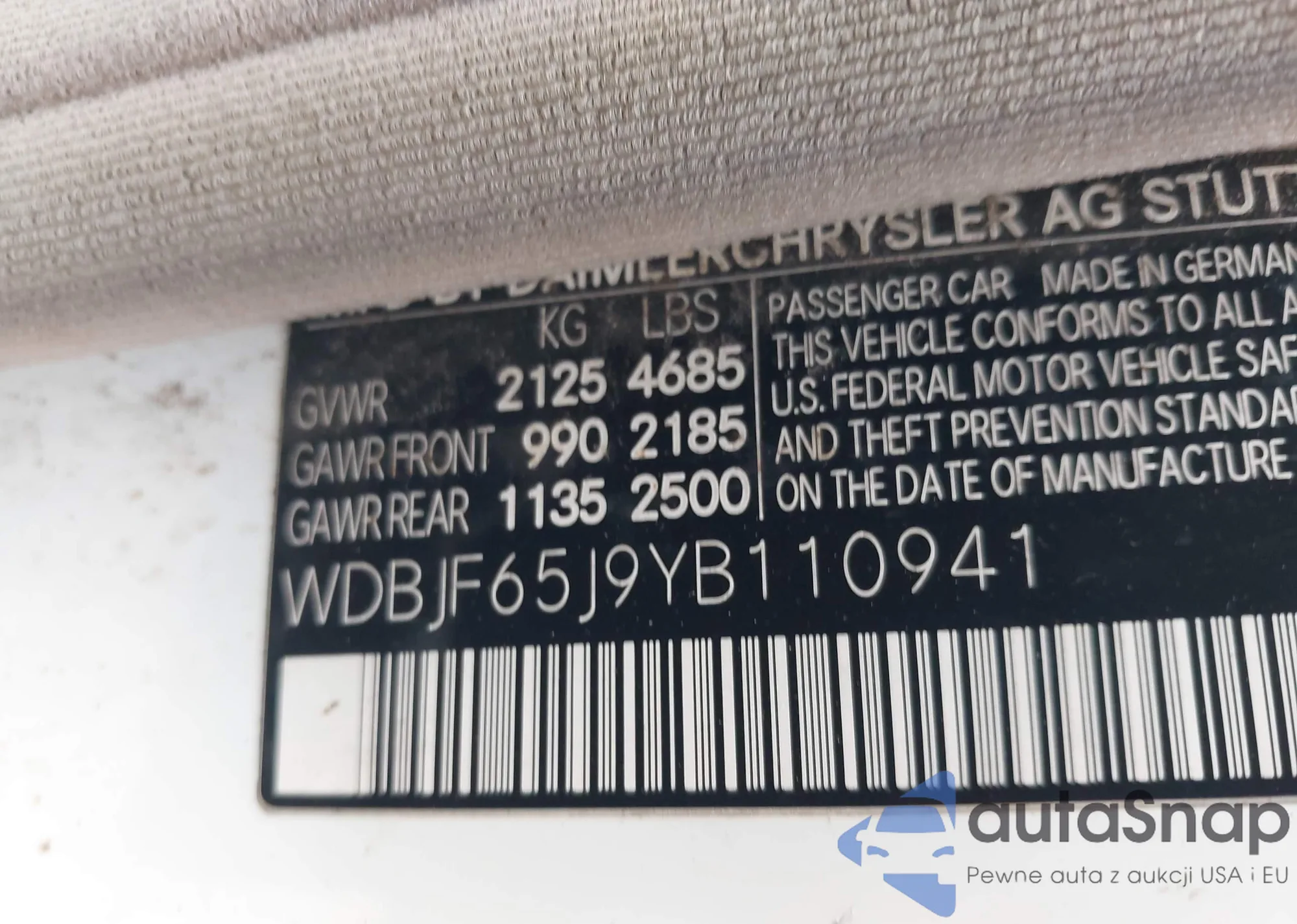 • VIN WDBJF65J9YB110941