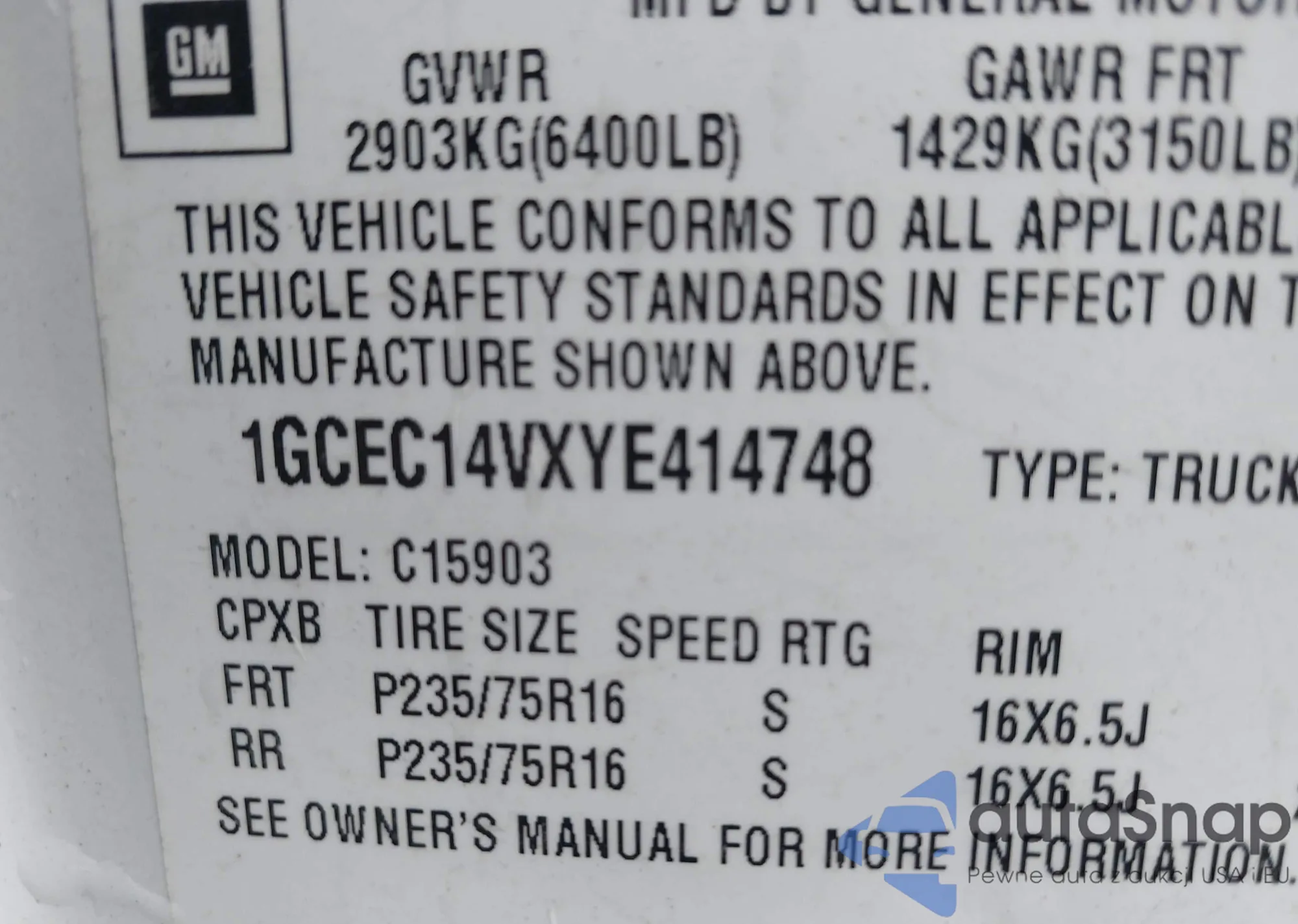• VIN 1GCEC14VXYE414748