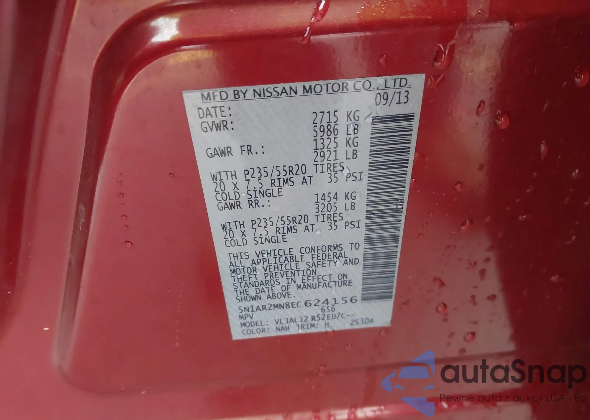 • VIN 5N1AR2MN8EC624156