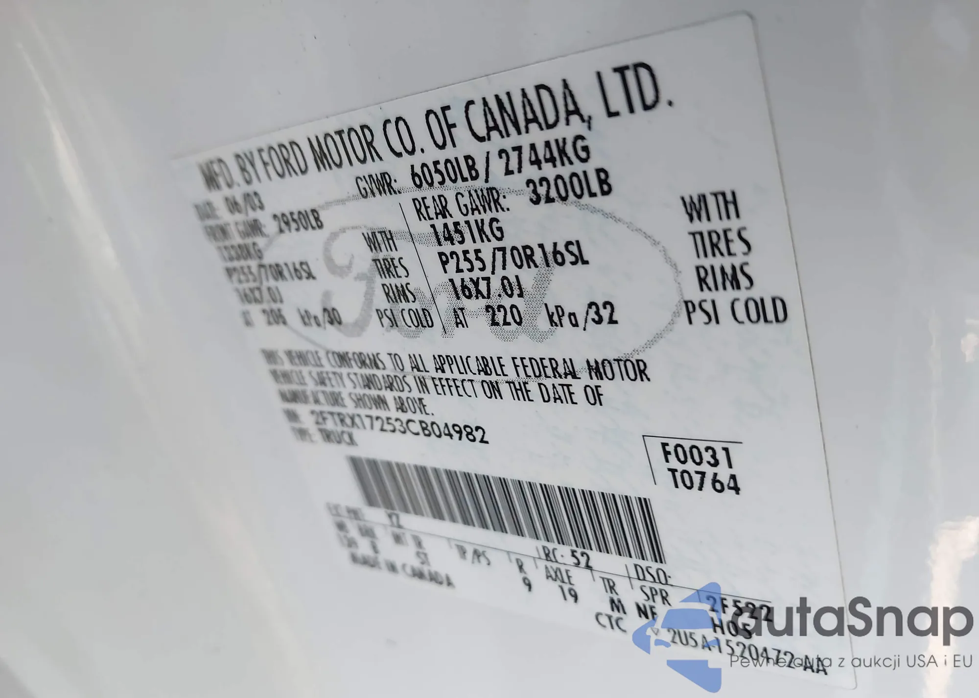 LOT: 44121549 VIN: 1HGCM56374A134201