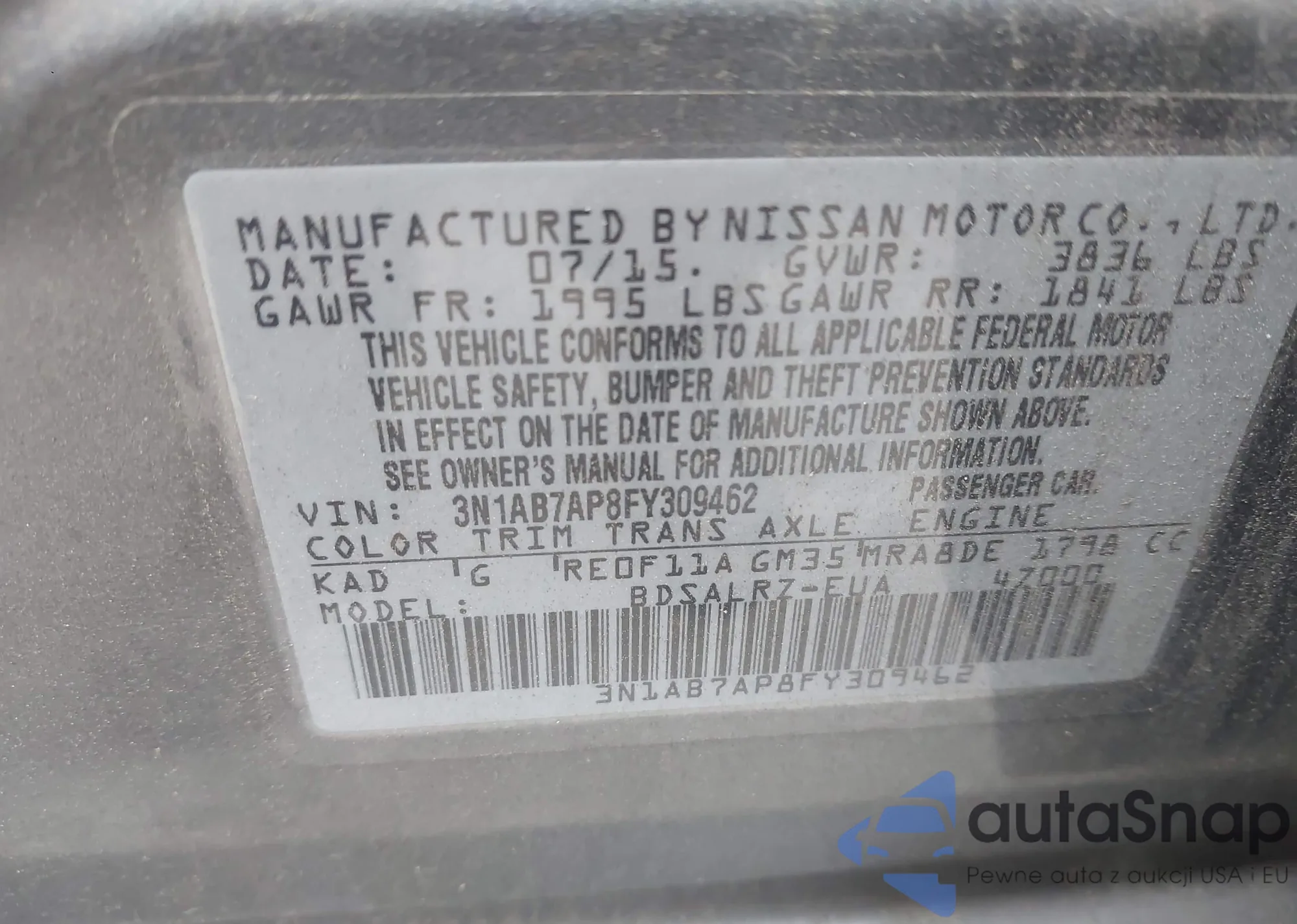 • VIN 3N1AB7AP8FY309462
