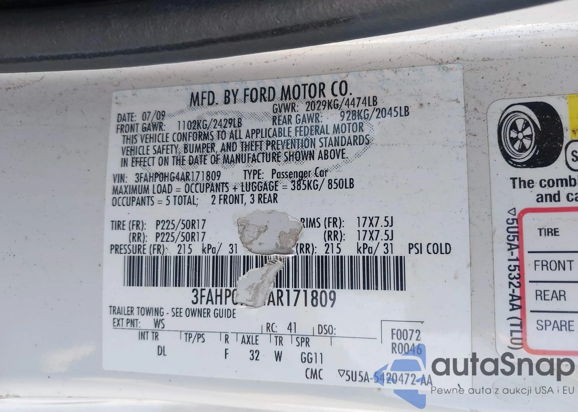 • VIN 3FAHP0HG4AR171809