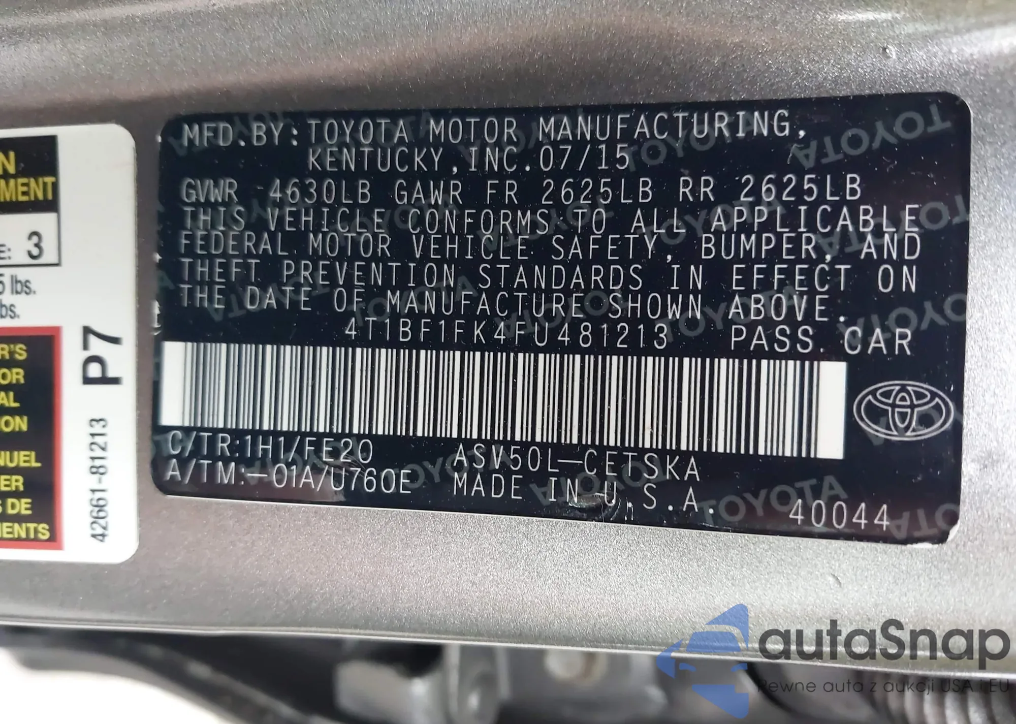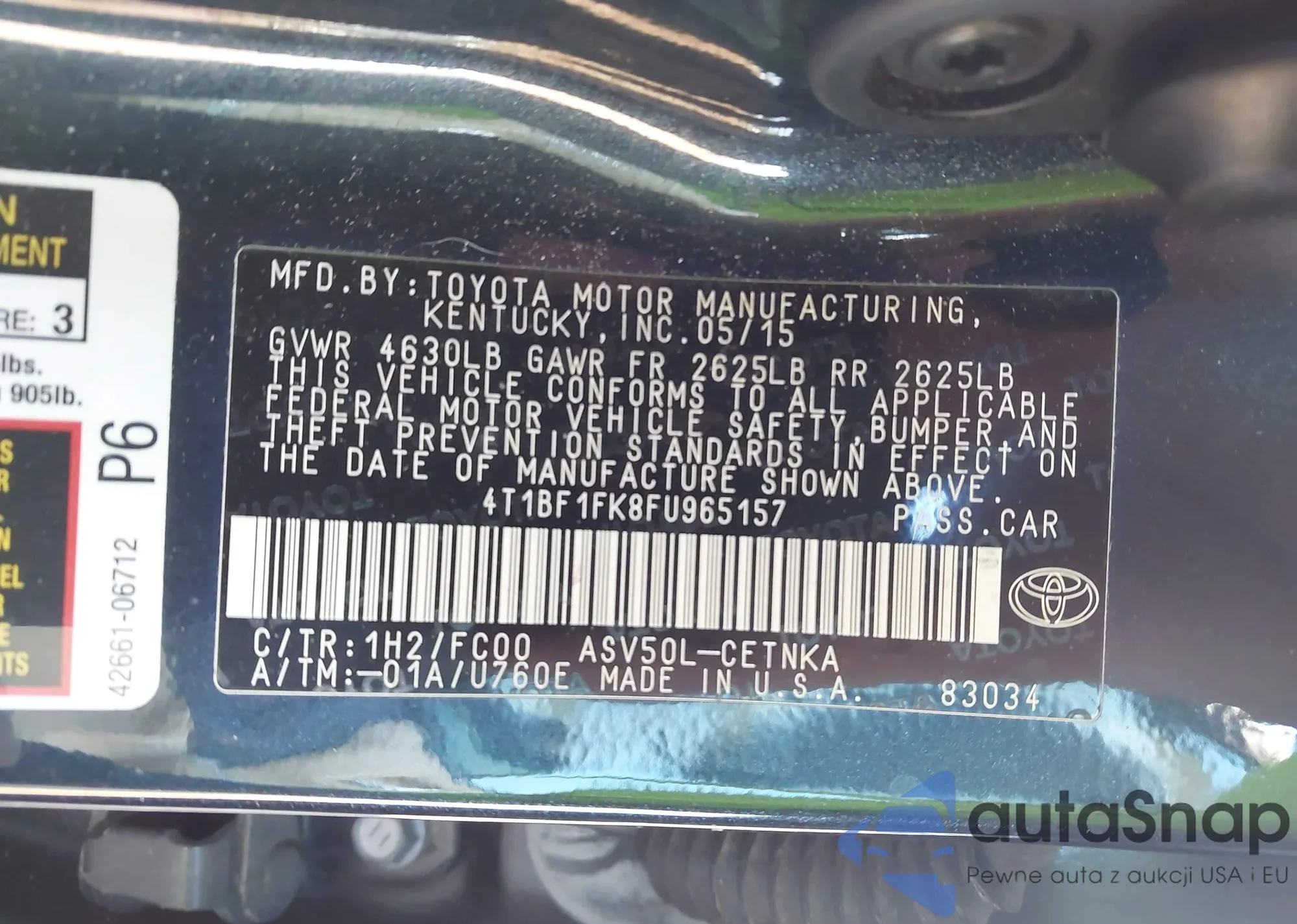 LOT: 43977926 VIN: 4T1BF1FK8FU965157
