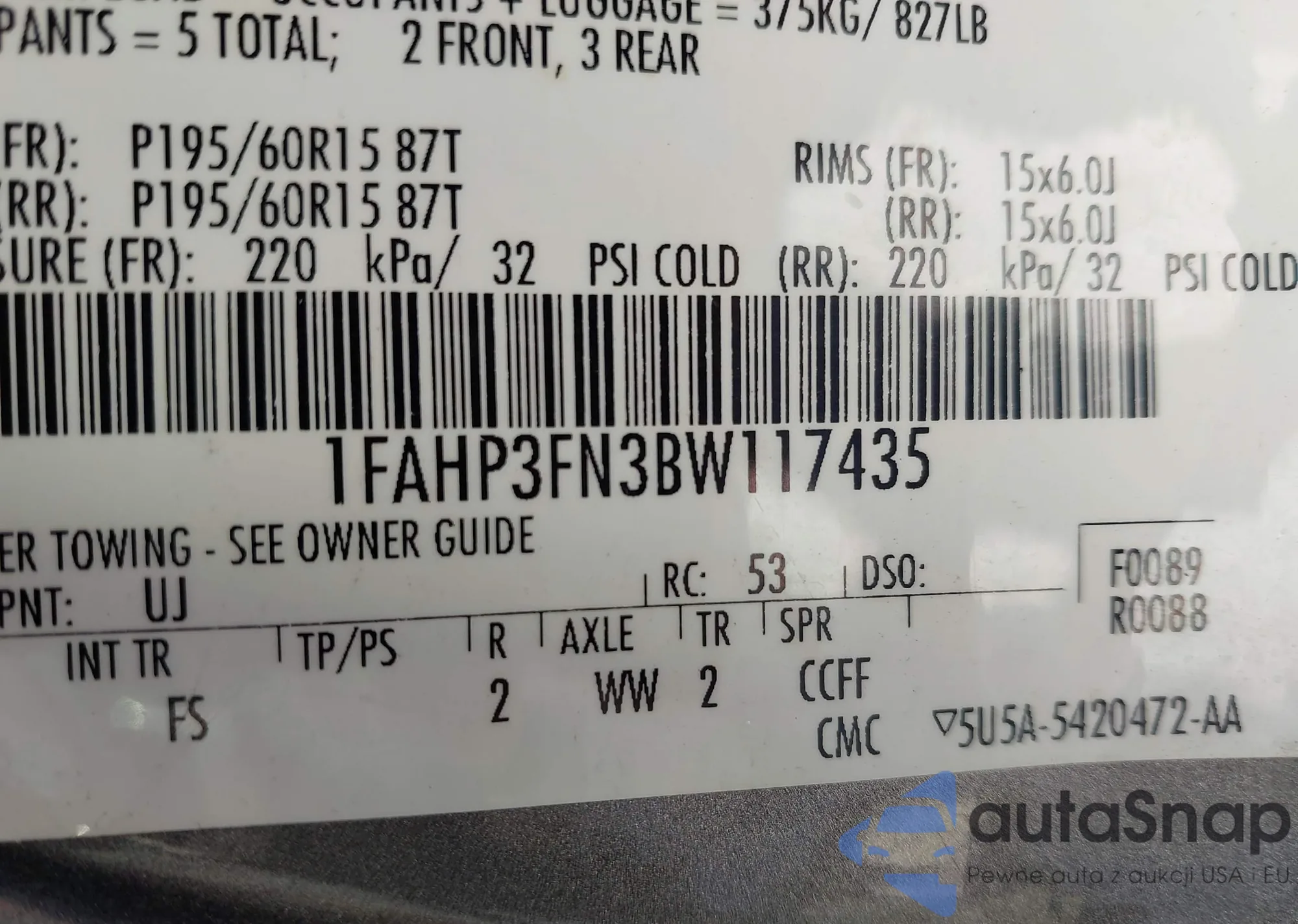 • VIN 1FAHP3FN3BW117435