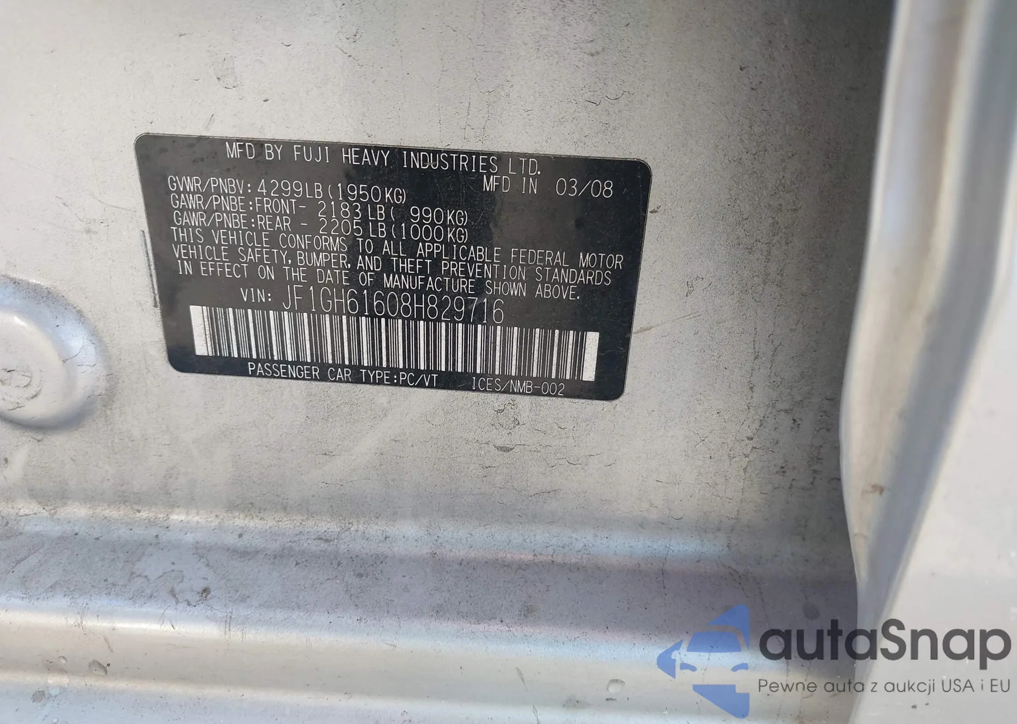 LOT: 44072808 VIN: JF1GH61608H829716