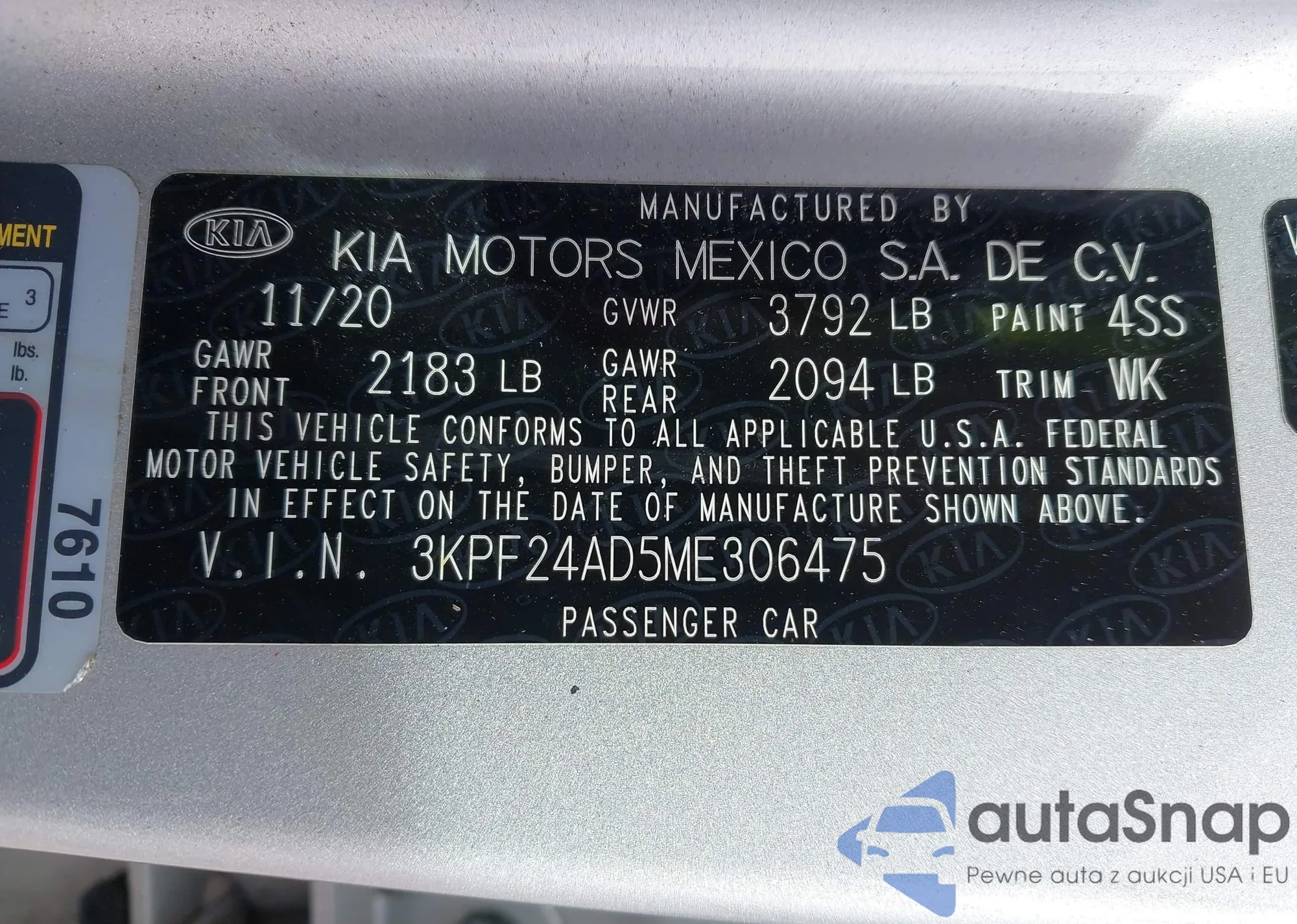 • VIN KNAFX4A64F5403617