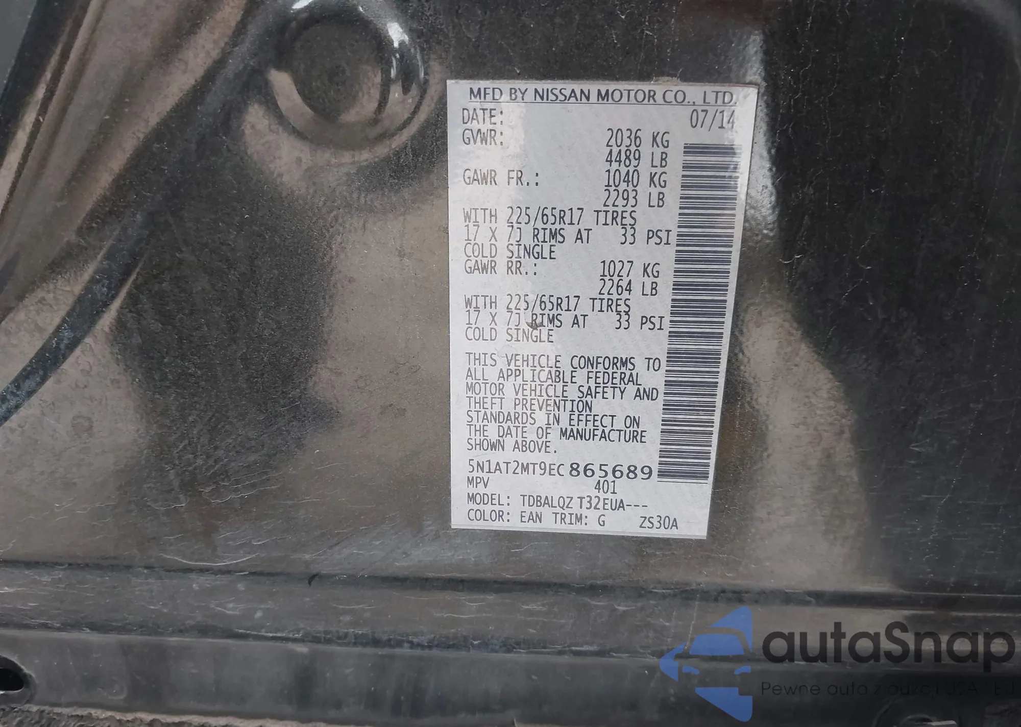 • VIN 5N1AT2MT9EC865689