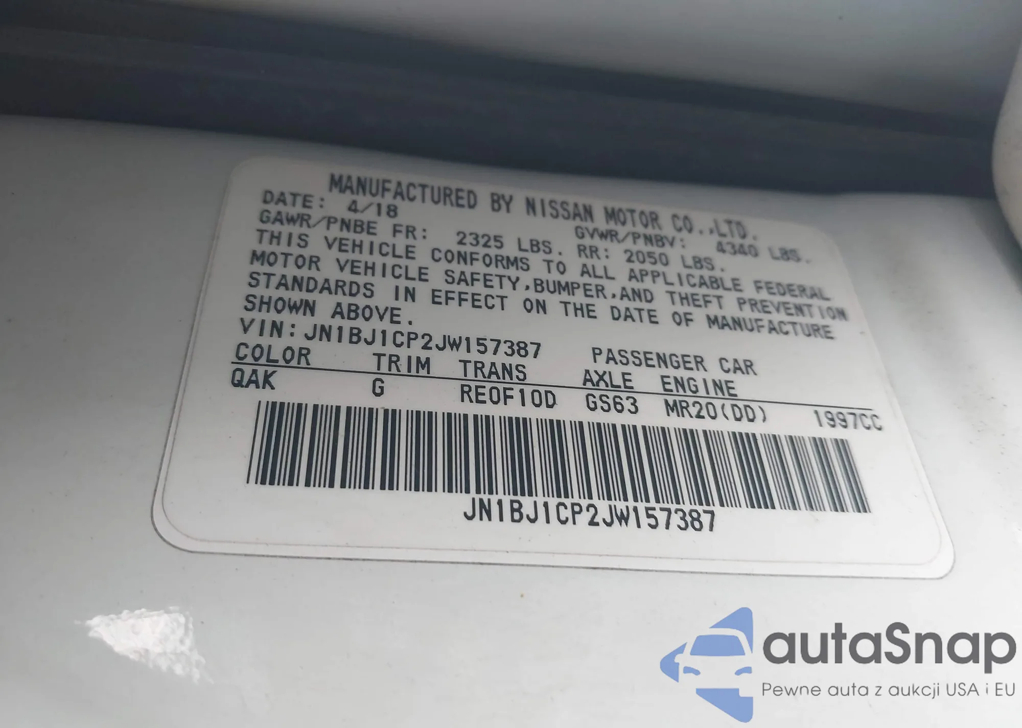 LOT: 43802264 VIN: 3N1CN7AP0FL800105