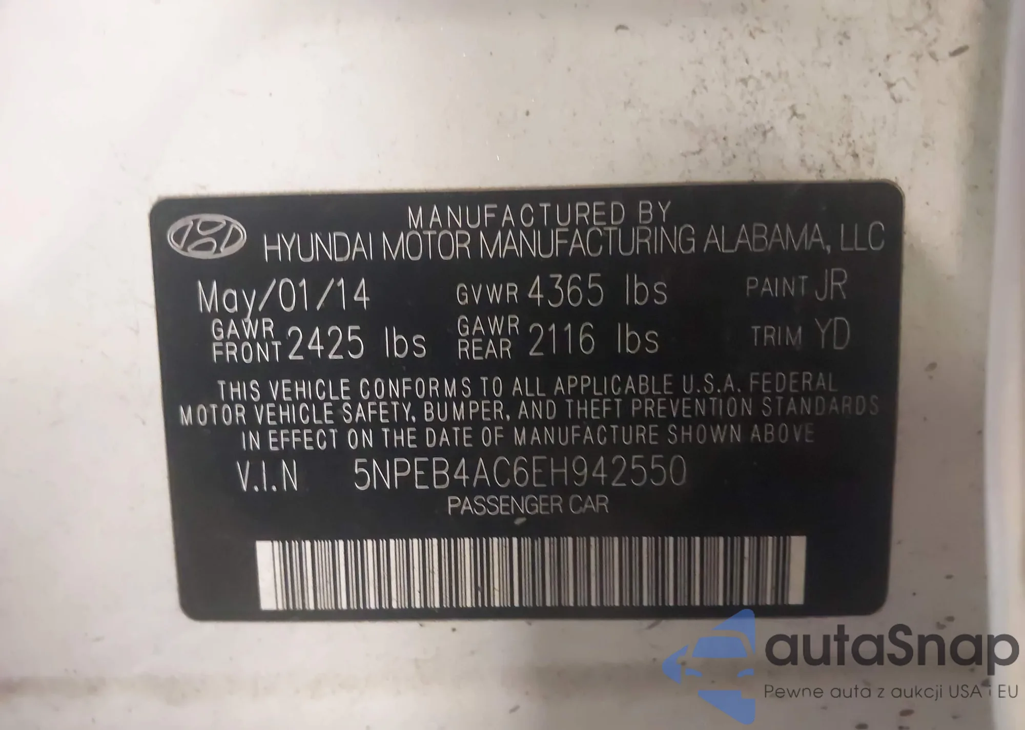 • VIN 5NPEB4AC6EH942550