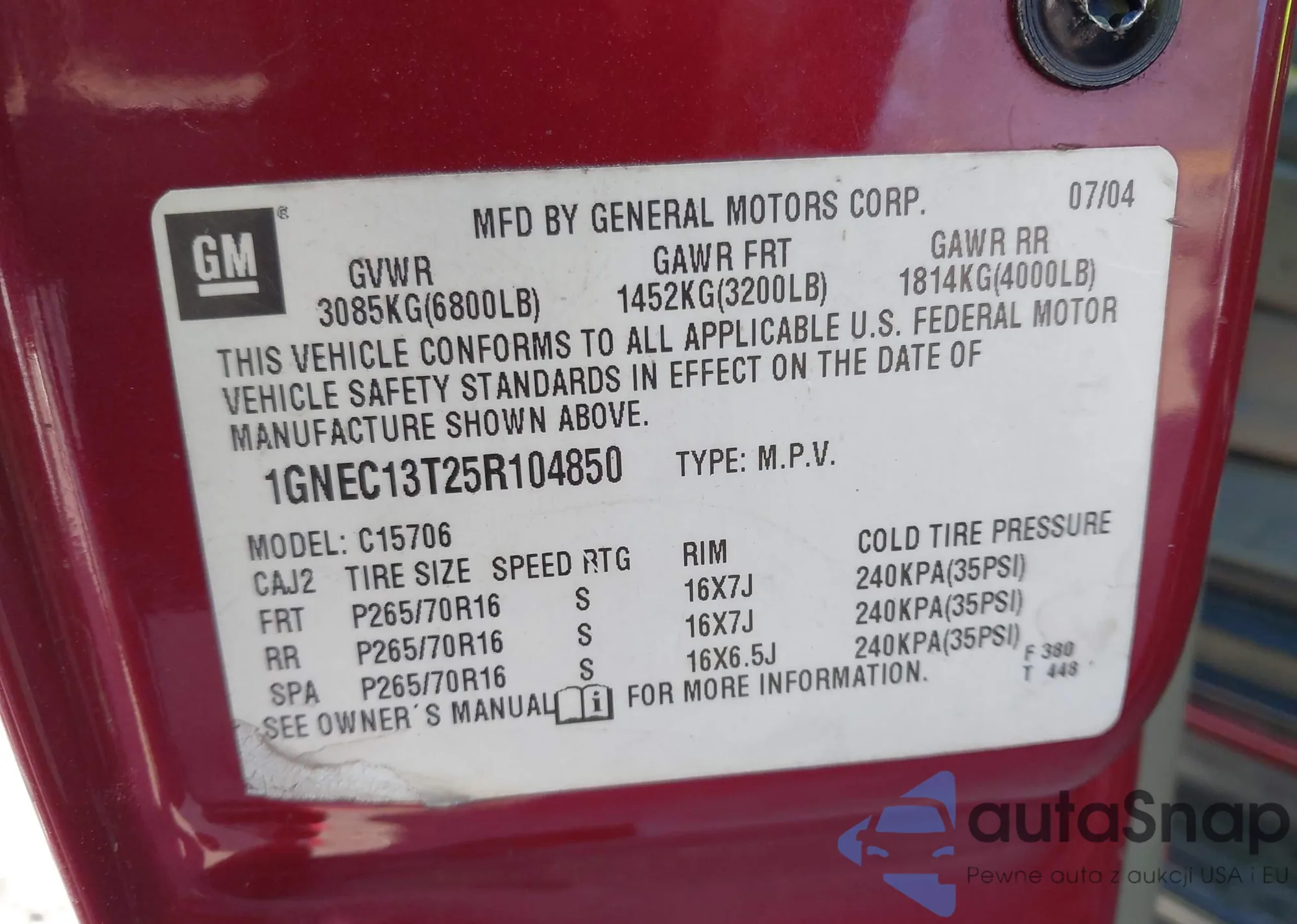 • VIN 1GNEC13T25R104850