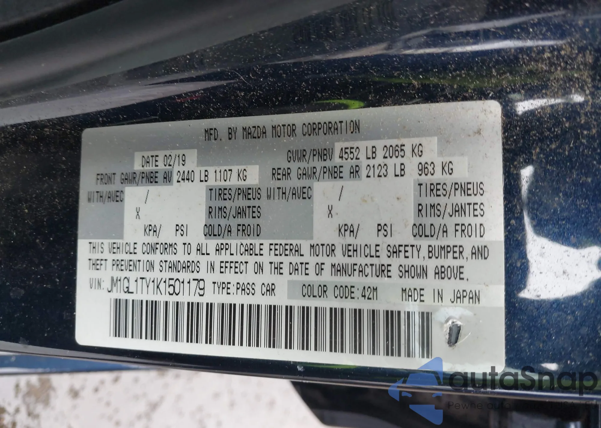 LOT: 43915421 VIN: JM1GL1TY1K1501179