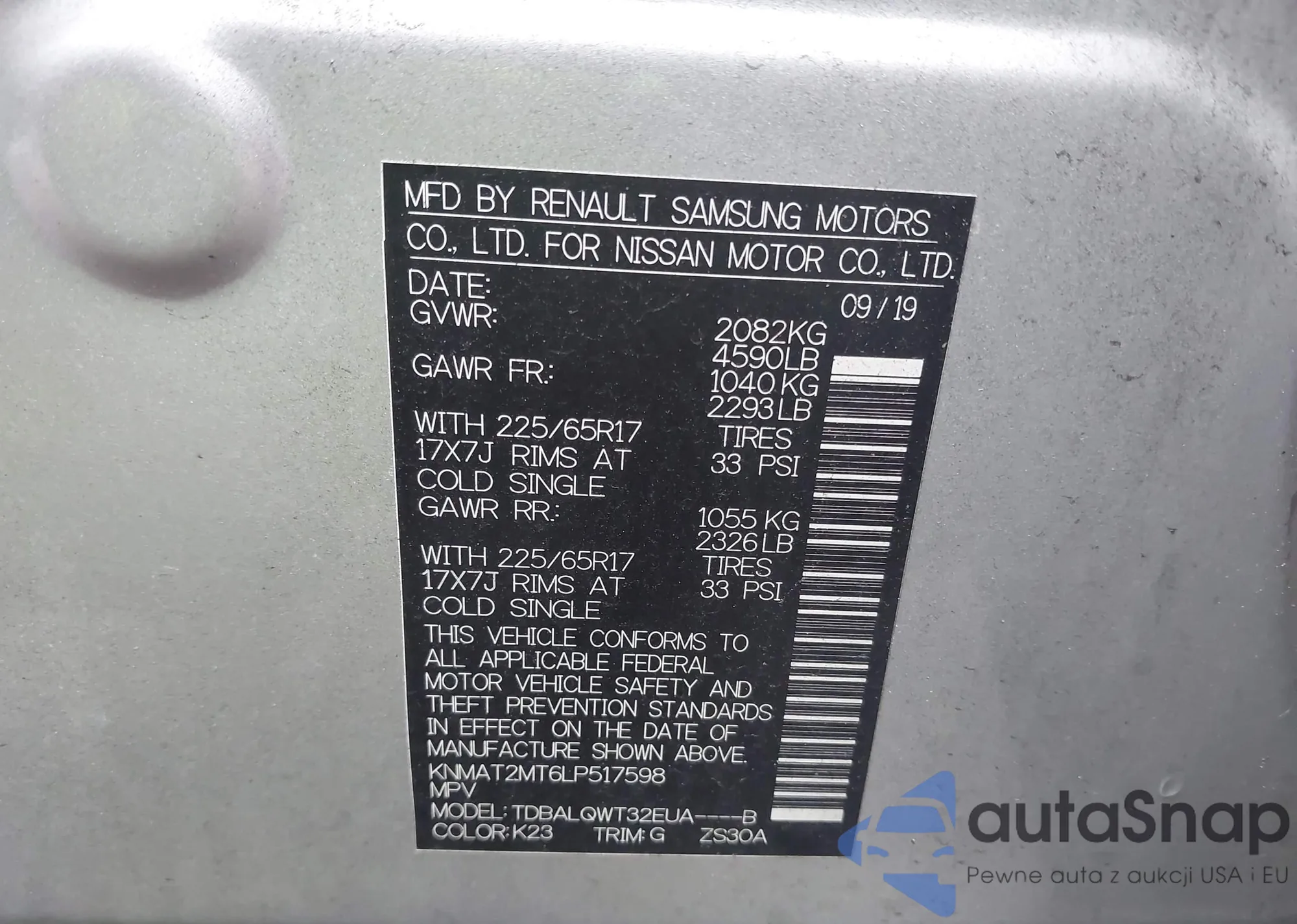 LOT: 43862668 VIN: WP1AG2AY9MDA34306