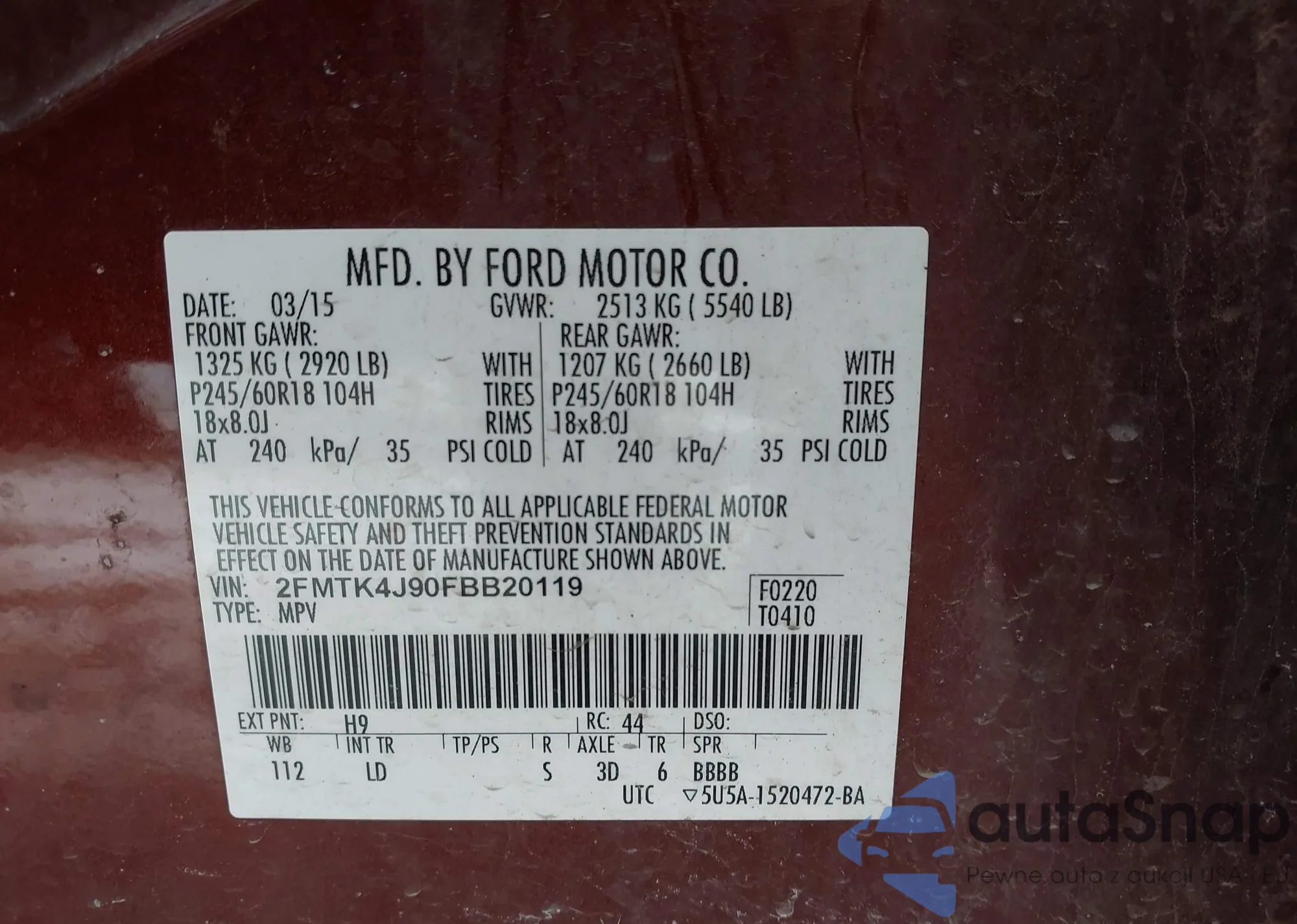 LOT: 43954598 VIN: 1FMFU20558LA13242